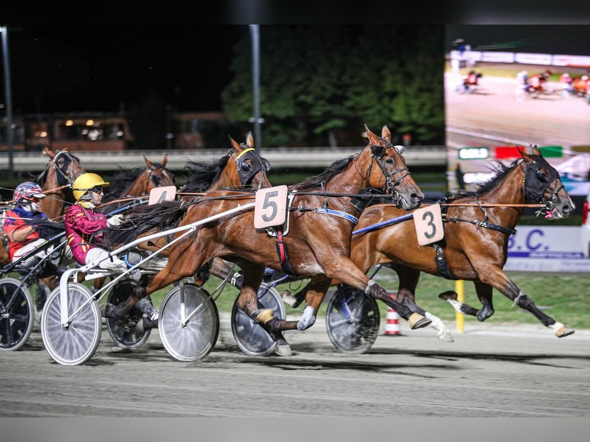 ESTALBA PAX Eine wunderschöne 6-jährige Trotter-Stute. Tochter von IGLESIAS & OMARA QUIN. Schätzungshöhe ca. 1,60 m. Eine Stute mit außergewöhnlichem Charakter. Sie läuft monatlich und hat keinerlei Probleme. Wir suchen eine neue verantwortungsbewusste Person, die sich um sie kümmert, da sich unsere Lebenssituation geändert hat. Sie befindet sich im Training und kann im Hippodrom von Cesena besichtigt werden. In ihrer Karriere hat sie fast 30.000 € gewonnen. Rekord auf der Bahn bei 1600 m: 1:13,6 Rekord auf der Bahn bei 2000 m: 1:16,7 Sie ist sowohl an den Sattel als auch am Sulky gewöhnt und ist wirklich sehr brav. Keine Zeitverschwendung. Keine Händler oder Geschäftemacher. Für weitere Informationen: +39 391 7059140
