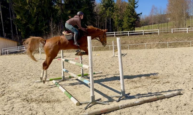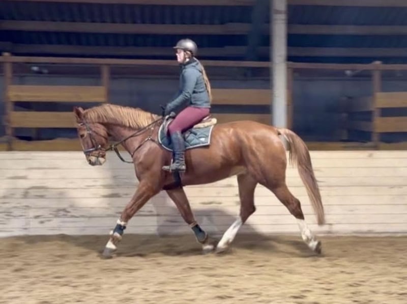 Dieser beeindruckende Wallach nach Henkie x Jazz wurde 2018 geboren. Mit seiner stattlichen Größe von ca. 180 cm deckt er auch größere Reiter perfekt ab. Vom Charakter ist dieser Fuchs sehr unkompliziert und brav. Auch beim reiten gibt es absolut nichts zu beanstanden. Dieses doppelveranlagte Pferd wurde schonend angeritten und gut ausgebildet. Auch das reiten draußen im Gelände ist dem Wallach nicht fremd.