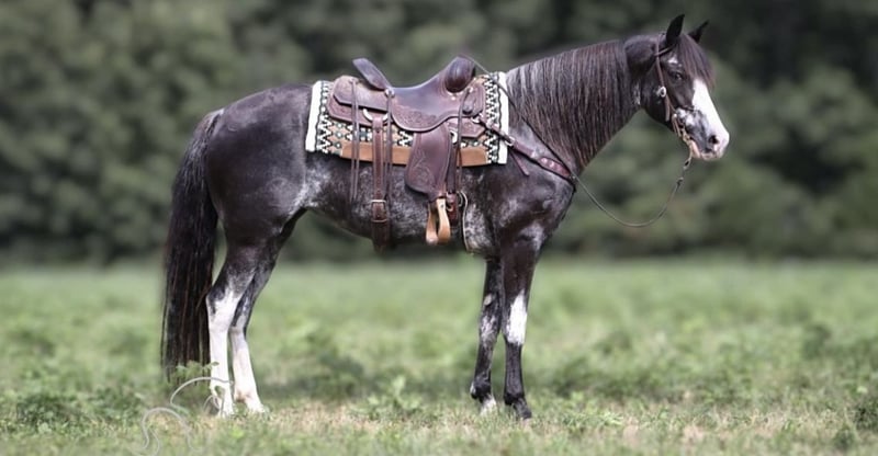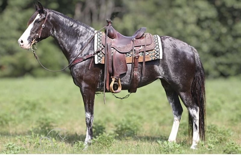 "Meet Moon-Pie, a beautiful 8-year-old Kentucky Mountain Horse mare with a striking blue roan coat. Standing at 15 hands, she’s the total package: sweet, steady, and smooth!