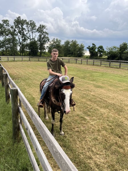 Moon-Pie is truly a gem — sweet, loving, and absolutely loves her snacks and rubs. She was originally purchased for my husband, who had never ridden before, and she took excellent care of him.