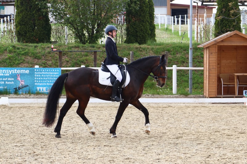 Hallo, ich biete Unterricht auf meinem sehr gut ausgebildetem Connemara Pony. Er wurde auf dem Turnier erfolgeich in LP Prüfungen vorgestellt und beherrscht auch Lektionen der höchsten Klasse auf einem guten Niveau. Habakuk ist ein lieber und fleißiger (wenn gefordert) Wallach. Er ist geeignet für Anfänger da ist er auch ganz ruhig und geduldig an der Longe (siehe Video) oder auch fortgeschrittene Reiter die sich weiterentwickeln wollen. Für den Unterricht steht ein 20x40 Außenplatz und eine kleine Halle zur Verfügung. Bei Kindern muss ein Erziehungsberechtigter anwesend sein. Gewichtsgrenze sind 60kg bei Fortgeschrittenen und bei Anfängern (noch kein ruhiger Sitz) ca. 40kg. Zu mir: Ich heiße Nicolas, habe die Übungsleiterprüfung FENA absolviert und arbeite seit 2021 als mobiler Bereiter/Trainer. Ich freue mich über motivierte SchülerInnen.