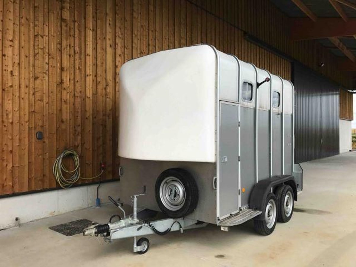 VAN die probleemloos twee grote paarden of drie pony's kan vervoeren. Maximaal toegestane massa van 3500 kg. Ifor Williams HB 510 XL schuine aanhangwagen.