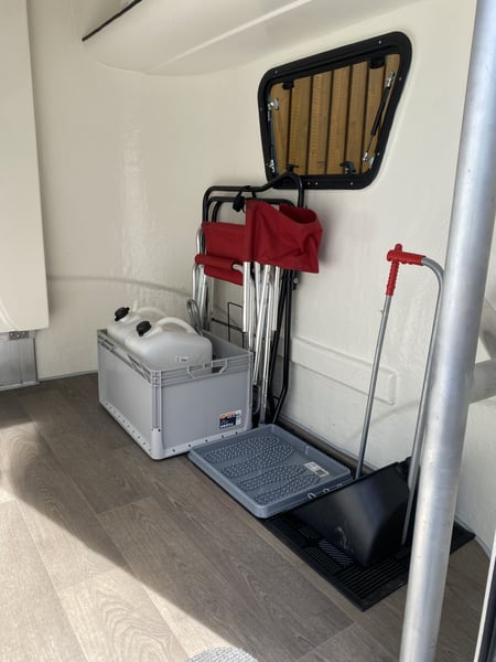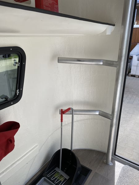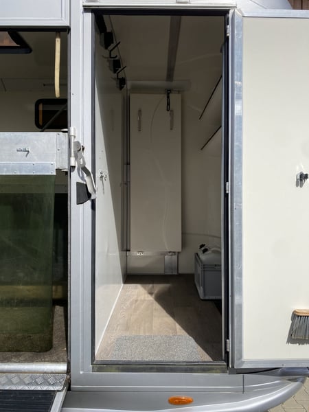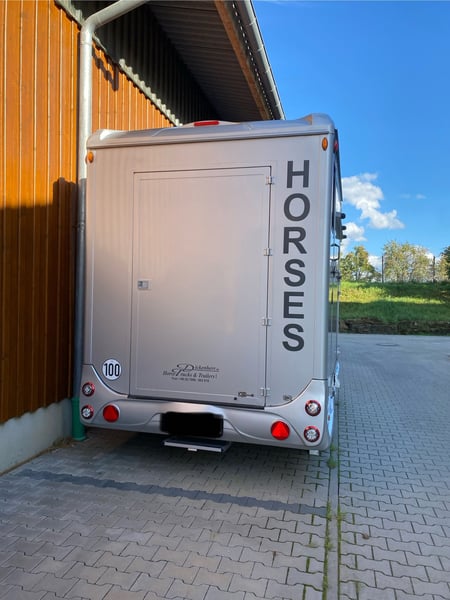 Sprzedam używaną przyczepę do koni Steinsberger / Dickenherr Anka na 2 konie Wyposażenie / Akcesoria Z tyłu: Guma między ściankami działowymi Koryta na paszę Siatki na siano Haki do przypinania Duże drzwi z tyłu Ochrona dla ogierów / przed ugryzieniem Z przodu: Różne uchwyty / haki na wędzidło, siodło, bat, miotłę 2 przegrody do przechowywania w tym skrzynki Kanister na wodę Łopatka do paszy Łopata Zbieracz obornika Mobilny uchwyt na siodło Krzesło kempingowe Podnośnik Pasujący pas Lusterko Mata podłogowa