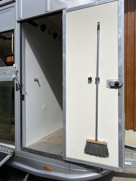 Verkaufe gebrauchen Pferdeanhänger Steinsberger / Dickenherr Anka 2 Pferde Hänger Ausstattungen / Zubehör Hinten: Gummi zwischen den Trennwänden Futtertröge Heunetze Anbindehaken Große Türe nach Hinten Hengst-/ Bissschutz Vorne: Diverse Halter/ Haken für Trense, Sattel, Gerte, Besen 2 Fächer für Stauraum inklusive Boxen Wasserkanister Futterschaufel Schaufel Bollensammler Mobiler Sattelhalter Campingstuhl Wagenheber Spanngurte Spiegel Fußmatten