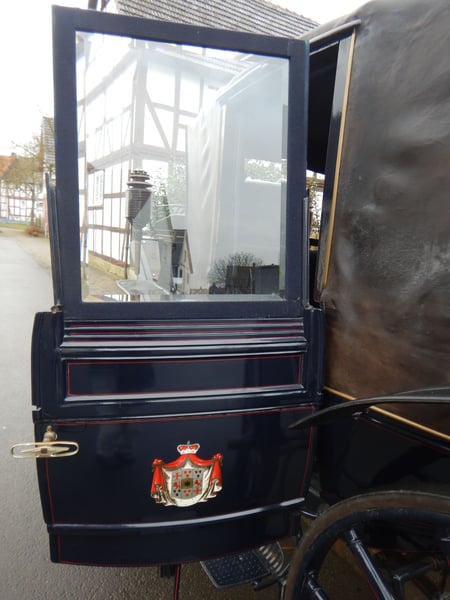 Landauer vom Fürst von Waldeck. Das fürstliche Wappen ist auf der Kutsche. Der Wagen wurde restauriert und ist in einem sehr guten Zustand. Ideal zum Hochzeiten fahren mit großen Pferden. Im Auftrag zu verkaufen.