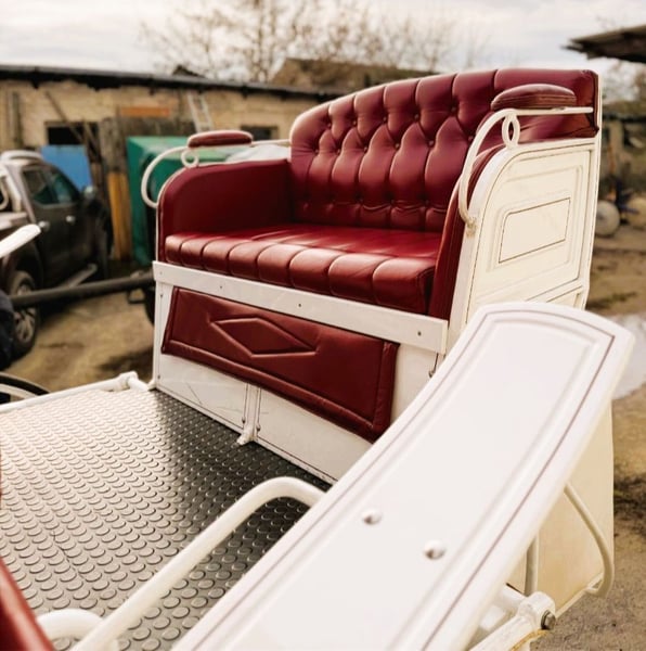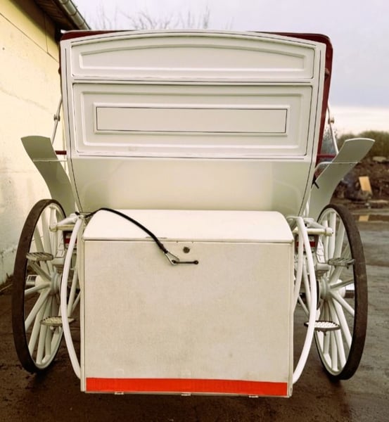 Beschreibung: Vis a Vis / Sonderanfertigung Platz für 11 Personen inkl. Fahrer mit extra Groomsitz für 3 Personen hinten. Sie verfügt über 4 Scheibenbremsen, kurbelbremse und Straßenbeleuchtung. Spurbreite 2 m, Länge ca. 6,50m, Räder Vollgummi. Vorne befindet sich eine zusätzliche Kiste für den Fahrer. Pferdeart: Großpferde Gespann Art: Bis zu 4-Spänner Zustand: gebraucht / sehr gut Fahrbereit: Ja, Kutsche ist voll fahrbereit und fährt sich ohne Probleme Farbe: Weiß mit Verdeck und Sitze in echt Leder / Bordeauxrot Im Koffer hinten ist genügend Stauraum für Decken, Futter oder einer Abdeckplane. Zusätzlicher Stauraum befindet sich zusätzlich unter den Sitzbänken. Preis ist VB! Bei Interesse freuen wir uns auf Ihre Mail. pferdetaxe.werneuchen@gmail.com Abholung bevorzugt! Eine Lieferung kann innerhalb eines gewissen Umkreises gegen Aufpreis durchgeführt werden, schreiben Sie uns hierfür bitte an, um mögliche Details zu klären.
