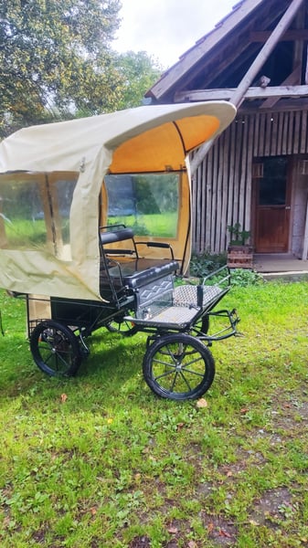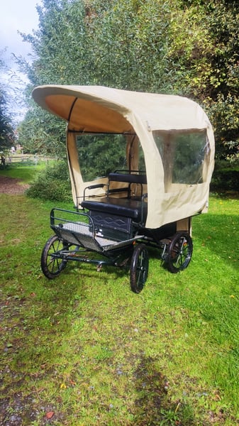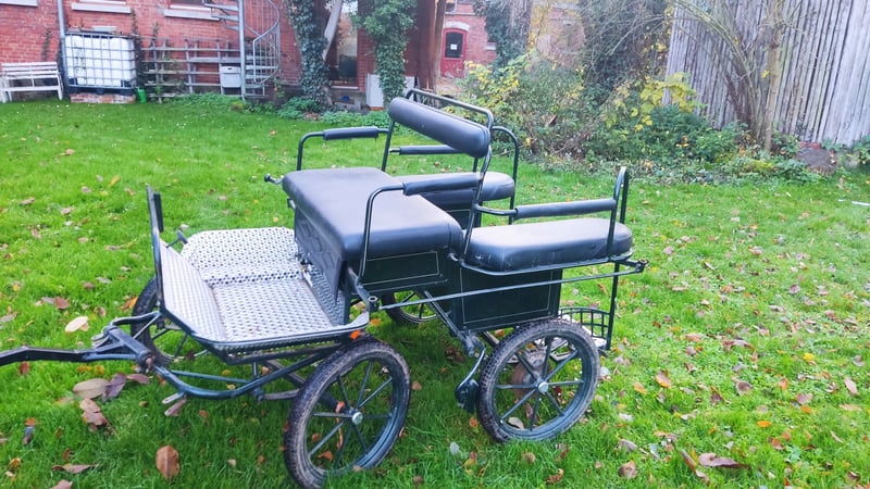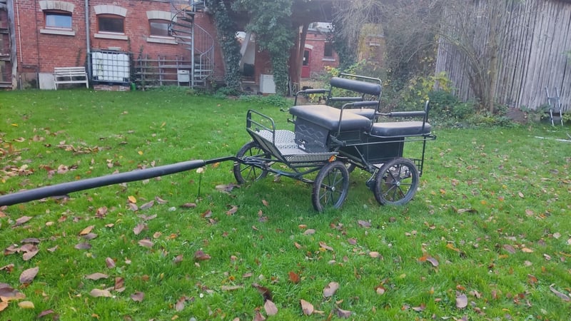 Biete hier meine schöne, leichte vielseitig einsetzbare Ponykutsche an. Ich glaube die ist für Mini -shettys bis Ponys mit einem Stockmaß von ca 120 cm passend.