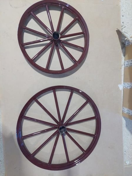 1st Set: Pneumatic wheels in the following sizes: 2 pieces – 23" (orange) 2 pieces – 25" (orange) Includes: 4 rims (orange - stainless steel) 4 tires with inner tubes 2nd Set: Pneumatic wheels in sizes 29" and 23" Includes: 4 rims (burgundy-red / brown) 4 tires with inner tubes Condition: New Price: €1,200 + VAT / per set For more information: Email: info@vprege-repnik.si Phone: +386 40 984 220 / +386 40 705 868 Website: www.vprege-repnik.si