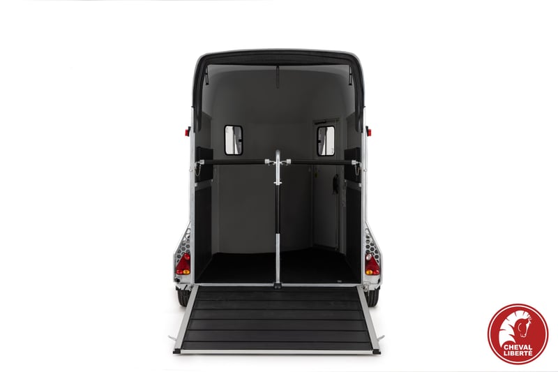 In stock colors: Blue White The Cheval Liberté Gold 3 horse trailer is a highly popular choice among horse owners and professionals due to its practicality, safety features, and elegant design. Engineered with the comfort and protection of your horses in mind, it provides advanced technology, user-friendly handling, and long-lasting durability. Key Features of the Gold 3 Trailer • Capacity: Suitable for transporting two horses • Pullman 2 Suspension System: Innovative Pullman 2 suspension ensures a smooth and stable ride, reducing vibrations and improving overall transport comfort. • High-Quality Materials: Anodized aluminum side panels and aluminum flooring (with a 5-year floor warranty) for superior durability and protection. • Ramp/Door Combination: The multifunctional rear system can be used as a ramp or door, allowing easy loading and unloading. • Ventilation: Multiple sliding windows ensure excellent airflow for the horses’ comfort. • Non-Slip Rubber Flooring: The floor is covered with sealed, non-slip rubber for increased safety. • Spacious Tack Room: Integrated tack compartment for secure and convenient storage. Technical Specifications & Standard Equipment Patented Pullman 2 chassis Reinforced fiberglass roof & front section Aluminum sides Large side access door Aluminum floor + 8 mm rubber mat Rear ramp also opens as doors + automatic roller Adjustable front and rear breast/breech bars Automatic jockey wheel with large handle Front sliding windows (tempered glass) with vents Side sliding windows 700 × 200 mm Padded side walls Kick-protected side panels Interior light Tack room Wheels 185/65R14 with steel rims Maximum total weight available up to 2600 kg + head partition + extra rubber mat 📞 Contact & Availability Trailers are available from stock or by order. For more information, please contact us: 📱 00386 40 984 220 📧 info@vprege-repnik.si Photos are symbolic 7975,00 € + VAT
