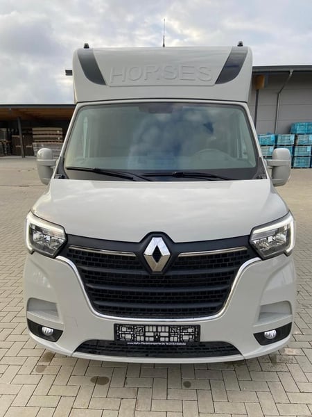We offer the following horse transporter: Renault Master General Data: - First registration / Year of manufacture: 01/2024 - Chassis mileage: 57,371 km - Condition of horse compartment: New - Chassis brand: Renault - Horse compartment size: 2.5 meters in length - Engine: 140 HP - Registration: Horse transporter - Permissible gross weight: 3,500 kg - Load capacity: Up to / (not specified) - Seats: 3 - Sleeping places: 0 - Transmission: 6-speed manual - Tow bar: Yes, with a towing capacity of 2,500 kg Chassis Equipment: - Tires: Good condition (all-season 225/65/R16C) - Cruise control: Yes - Air conditioning: Yes - Radio with Bluetooth: Yes - Interior and exterior camera: Yes - Air suspension: Yes Horse compartment equipment: - Number of horse stalls: 1-2 - Horse compartment camera: Yes - Stallion equipment: Yes - Blue and white lights: Yes - Fan: Yes - Number of roof vents and side windows: 1 roof vent and 2 side windows - Tack room: Accessible from the rear - Saddle holders: 2 - Mirrors: Yes