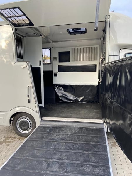 Wir bieten hier folgenden Pferdetransporter an: Renault Master Allgemeine Daten: - Erstzulassung bzw. Baujahr: 01/2024 - Kilometerstand Fahrgestell: 57.371 km - Zustand Pferdeabteil: Neu - Marke Fahrgestell: Renault - Größe Pferdeabteil: 2,5m länge - Motor: 140 PS - Zulassung: Pferdetransporter - Zulässiges Gesamtgewicht: 3500 kg - Auflastbar auf: / - Sitzplätze: 3 - Schlafplätze: 0 - Getriebe: 6-Gang Schaltung - Anhängerkupplung vorhanden, 2500 kg Anhängelast Ausstattungen Fahrgestell: - Reifen: guter Zustand (Allwetter 225/65/R16C) - Tempomat: Ja - Klimaanlage: Ja - Radio inkl. Bluetooth: Ja - Kamera innen und außen: Ja - Luftfederung: Ja Ausstattungen Pferdeabteil: - Anzahl Pferdestellplätze: 1-2 - Kamera Pferdeabteil: Ja - Hengstausstattung: Ja - Blaulicht und Weißlicht: Ja - Lüfter: Ja - Anzahl Dachluken und Seitenfenster: 1 und 2 - Sattelkammer: im Heck von hinten erreichbar - Sattelhalter: 2 - Spiegel: Ja