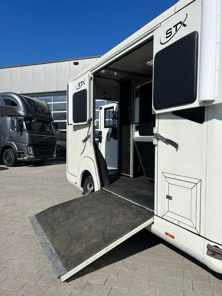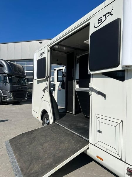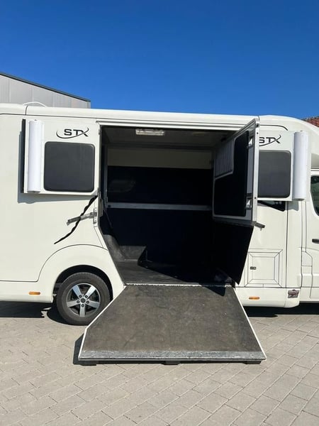 Renault Master STX Renault STX sofort verfügbar ! AUTOMATIKGETRIEBE Zulässiges Gesamtgewicht: 3.500 kg auflastbar auf 4.000 kg Anzahl Pferde: 1-2 Pferde ✅ 20 000 Km Fahrgestell: Renault Master L3H1,2.3 Liter EURO 6d 180 PS Automatikgetriebe 5- Sitzer Bereifung 225/65 R 16 Pferdeabteil: Hengstausstattung Sonderzubehör: Sonderzubehör Anhängerkupplung Kugel 2.500 kg Klimaanlage Automatik Ledersitze Schwarz Videoüberwachung/Rückfahrkamera Aluminiumfelgen Ganzjahresbereifung Nachtfahrbeleuchtung blau Navigationssystem 2x Sattelhalter 5x Trensenhalter 3x Ablagefächer Farbe: Weiß