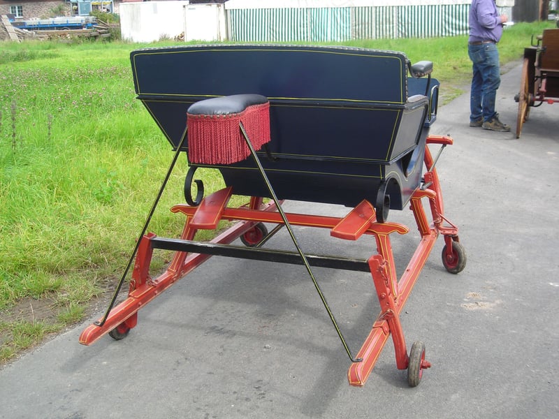 Schlitten für 4 Personen plus Kutscher hinten. Der Schlitten ist so gebaut das man eine Hansmeier Deichsel oder Schere daran befestigen kann. Da die Originaldeichsel zu niedrig war.