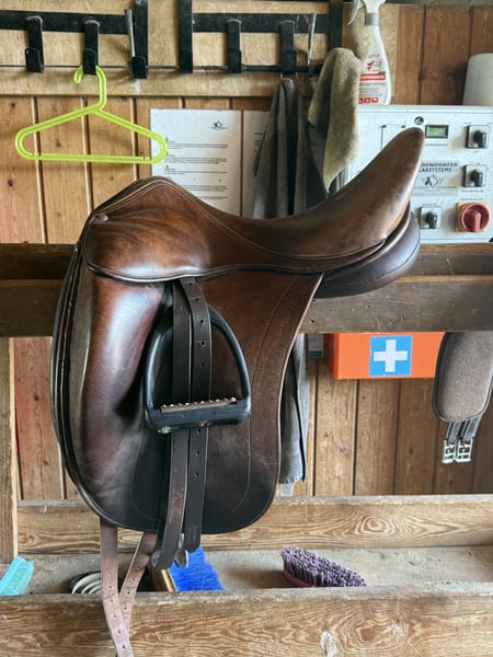 Ich verkaufe meinen Childeric Dressursattel in gutem, gepflegtem Zustand. Der Sattel weist nur leichte Gebrauchsspuren auf und wurde stets regelmässig gereinigt und sorgfältig gepflegt. Aktuell liegt er auf einer Schweizer Warmblutstute (ca. 172 cm) und wurde bislang immer mit einer Lammfellschabracke verwendet. Der Sattel ist 17.5 Zoll. Der Sattel ist äusserst bequem und bietet auch bei bewegungsintensiven oder schwierigen Pferden hervorragenden Halt und Sitzkomfort. ➡️ Steigbügel sind nicht im Verkauf inbegriffen. 📍 Standort: Nähe Fehraltorf, 8320 📱 Bei Interesse oder Fragen gerne per WhatsApp: 079 882 61 11
