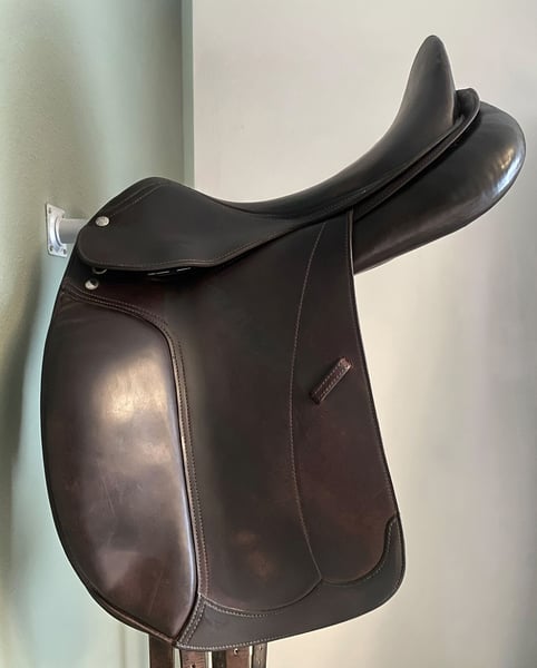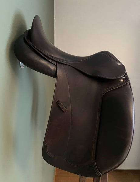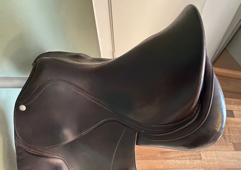 Dressursattel Peter Menet, gekauft im Jahr 2020 zu CHF 4'880. Leder doppeliert dunkelbraun, lange Strippen. Der Sattel wurde immer gut gepflegt und ist in gutem Zustand. Letzte Aufpolsterung vom Sattler anfangs 2025. Dazu passende Steigbügelriemen werden mit abgegeben. Masse: Sitzfläche: 17.5 Zoll Sitztiefe: ca. 9 cm Sattelblatt: ca. 40 cm Sattelkissen: ca. 47 cm Abholung mit Barzahlung oder Vorauszahlung mit anschliessendem Postversand.
