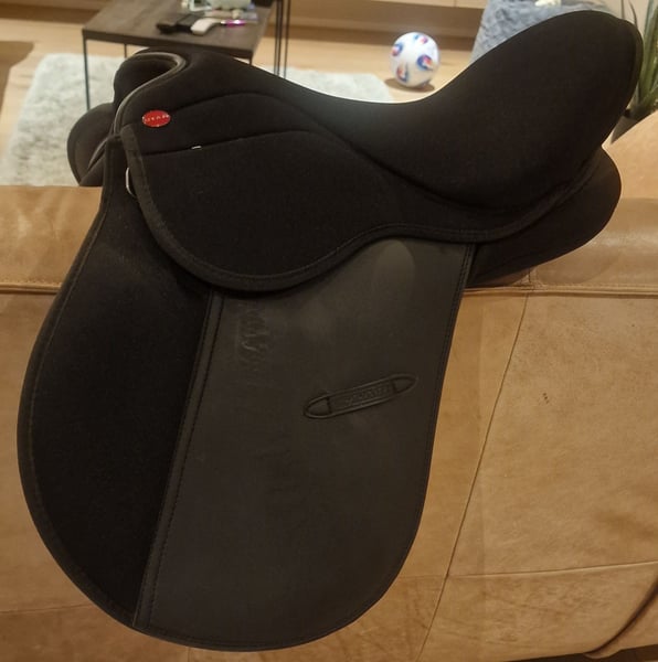 Dieser vielseitige Ponysattel aus Neopren ist der perfekte Begleiter für junge Reiterinnen und Reiter. Durch sein geringes Gewicht, den bequemen Sitz und das pflegeleichte Material eignet er sich hervorragend für Kinder und Einsteiger . Produktdetails: - Ponysattel – ideal für Kinder und Jugendliche - Mattes Hightech-Material im eleganten Leder-Look - Bequeme Sitzfläche und weiche Neopren-Kniepauschen - Extrem pflegeleicht und robust - Leichtgewicht – angenehm zu handhaben für Kinder - Auswechselbare und verstellbare Klettpauschen für optimalen Sitz und Halt - Kunststoff-Sattelbaum - Kammerweite: ca. 31 cm - Farbe: Schwarz 200 chf