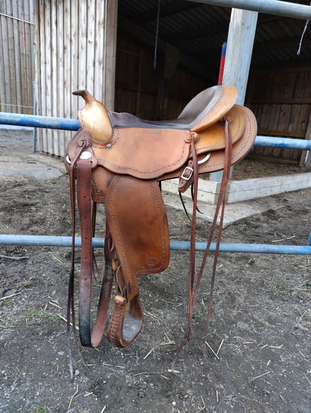 Gut erhaltener Westernsattel Equiflex 186/60 zu verkaufen. Es ist ein kurzer Sattel mit einem Baum für breite Pferde (wie Haflinger, etc.). Mit sechs praktischen Latigo-Strings. Ohne Sattelgurt und Satteltasche. Weitere Infos zum Sattel auf Anfrage. Besichtigung und Abholung in 9475 Sevelen. Kein Versand.