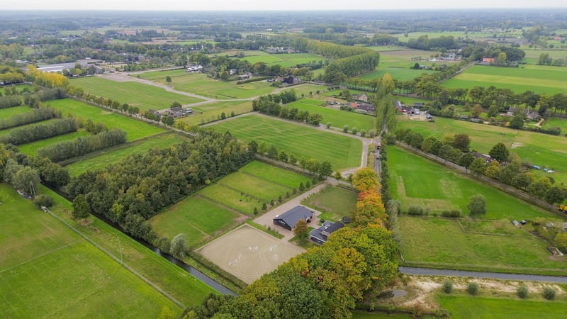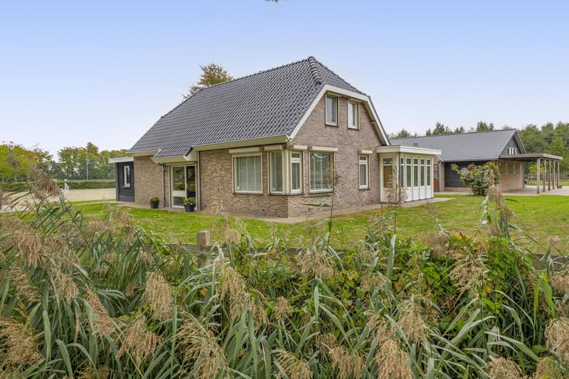 Prachtlocatie voor paardengeluk! Ontdek dit unieke object dat volop mogelijkheden biedt voor het hobbymatig en (semi)professioneel houden van paarden aan huis. Naast de ruim opgezette, levensloopbestendige, vrijstaande woning is er een bijzondere buitenfavoriet: een vrijstaande paardenstal, die met oog voor detail en kwaliteit is afgewerkt. Hoogwaardige materialen zoals RVS accenten en gebakken klinkers geven het geheel een exclusieve uitstraling. De stal beschikt over 6 paardenboxen met een functionele wasplaats. Verder is het perceel uitgerust met een ruime buitenpiste voorzien van een eb/vloedbodem en zorgvuldig aangelegde paddocks – perfect voor de serieuze paardenliefhebber! Neem snel contact op voor een bezichtiging en ervaar zelf de unieke sfeer en alle mogelijkheden die dit pand te bieden heeft! WOONHUIS Begane grond De ruime entreehal biedt toegang tot de woonkamer, slaapkamer, toiletruimte en de meterkast. De royale woonkamer is voorzien van een tegelvloer, stucwerk wanden en een stucwerk plafond. De ruimte is verdeeld in een zitgedeelte en een eetgedeelte. De royale woonkamer is voorzien van een tegelvloer, stucwerk wanden en een stucwerk plafond. De ruimte is verdeeld in een zitgedeelte en een eetgedeelte. De knusse zithoek, met een sfeervolle gashaard, nodigt uit tot ontspannen gezellige avonden. Het eetgedeelte profiteert van een overvloed aan natuurlijk licht en een fraai uitzicht op de paardenstal. In het midden is de keuken gesitueerd. De keuken met spoel/kookeiland en een apparatenwand is uitgerust met een vaatwasser, combi-oven/magnetron, diepvries en een koelkast. De keuken beschikt over veel opbergruimte. De riante slaapkamer met badkamer en-suite is voorzien van een fraaie PVC-vloer in visgraatmotief met strakke stucwerk wanden en een stucwerk plafond voorzien van inbouwverlichting. Door de royale afmeting biedt de ruimte u volop mogelijkheden. Dankzij de vaste kasten is er voldoende opbergruimte aanwezig – een perfecte oplossing voor al uw kleding en accessoires. Er is tevens een airco aanwezig. Vanuit de slaapkamer is er toegang tot de badkamer en-suite. Deze sfeervolle badkamer is geheel betegeld en verder uitgerust met een zeer ruime inloopdouche, een dubbele wastafel met meubel en een zwevend toilet. De ruime inloopdouche biedt met zijn sunshower en infraroodfunctie een ware wellnessbeleving, ideaal om na een lange dag tot rust te komen. Kortom een heerlijke ruimte om te ontspannen. De wasruimte is eveneens bereikbaar vanuit de slaapkamer. Deze praktische ruimte is ingericht met op maat gemaakte kasten, inclusief aansluitingen voor wasapparatuur en mechanische afzuiging, biedt deze ruimte een efficiënte en overzichtelijke oplossing – met als extra voordeel dat de apparatuur op hoogte is geplaatst. Een achterportaal met berging en vaste kasten biedt toegang tot de overkapping en het erf. Ook hier zijn aansluitingen voor de wasapparatuur aanwezig. 1e verdieping De overloop biedt toegang tot 2 ruime slaapkamers en een badkamer. De slaapkamers zijn beide voorzien van een laminaatvloer, stucwerk wanden en een schrootjes plafond. Onder de dakschuinte zijn schuifkasten gecreëerd, welke zorgen voor veel opbergruimte. De badkamer is geheel betegeld en uitgerust met een inloopdouche, een wastafel met meubel en een zwevend toilet. Een dakkapel zorgt hier voor natuurlijke ventilatie en lichtinval. Een luik biedt toegang tot de bergzolder waar de unit voor de airco is gesitueerd. TUIN Ontdek een oase van rust en privacy: de gehele woning wordt omgeven door een buitenruimte ingericht met gazon en bestrating van gebakken klinkers. Het royale overdekte terras aan de achtergevel van de woning vormt de ideale plek om na een lange dag te ontspannen, te genieten van een heerlijk kopje koffie of gezellige momenten met familie en vrienden. Hier ervaart u niet alleen een absolute aangename rust en privacy, maar ook een fraai uitzicht dat de landelijke sfeer compleet maakt. PAARDENSTAL Ontdek deze prachtige, vrijstaande paardenstal; een waar paradijs voor liefhebbers van de paardensport. De stal is gebouwd in een traditionele stijl met metselwerk gevels, waarvan enkele delen zijn gepotdekseld en is afgewerkt met een dak voorzien van sandwichpanelen in een authentiek dakpanmotief. Het geheel wordt afgesloten door openslaande deuren. Het gangpad is uitgerust met gebakken klinkers. De zes paardenboxen, elk voorzien van een rubberen vloer en deels bezette en deels rubberen wanden. De bijzondere RVS draaideuren met bamboe afwerking en het aparte buitenluik per box, dragen bij aan de moderne uitstraling en functionaliteit. De zadelkamer is afgewerkt met stucwerk wanden, een houten balkenplafond en een betonnen vloer. Deze ruimte is uitgerust met aansluitingen voor de wasapparatuur, een beregeningspomp, een groepenkast en de stroomvoorziening voor het weiland. Voor extra comfort beschikt de stal over een toiletruimte, welke is ingericht met een zwevend toilet, een urinoir en een wastafel. De wasplaats voorzien van een rubberen vloer en wanden, is uitgerust met warm- en koudwatervoorziening, zodat uw paarden altijd kunnen genieten van optimale verzorging. Tot slot biedt de aparte opslagruimte, voorzien van een betonnen vloer, bezette wanden en een geïsoleerd dak, met openslaande deuren en een loopdeur, de perfecte plaats om benodigdheden en materialen veilig op te bergen. Deze paardenstal combineert functionaliteit en comfort met een doordachte indeling en kwaliteitsafwerking – de ideale investering voor serieuze paardenliefhebbers die houden van oog voor detail en uitstekende faciliteiten. Welkom in uw nieuwe ruiterparadijs! OVERIGE FACILITEITEN De buitenpiste heeft een afmeting van ca. 25 mtr. x 50 mtr. en is voorzien van een eb/vloedbodem. Het weiland is verdeeld in 5 paddocks. Deze paddocks zijn uitgerust met automatische drinkbakken. De omheining is van hout, extra hoog. Het erf is afsluitbaar met een automatische poort. BIJZONDERHEDEN – Het geheel is aangesloten op de riole