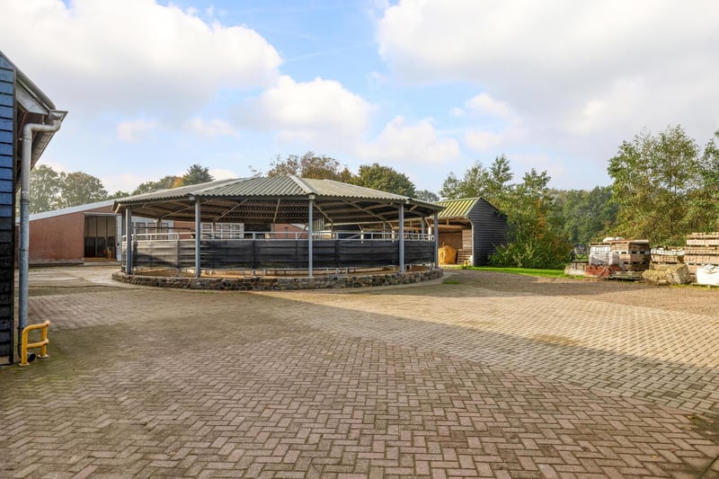 Complete equestrian accommodation including a detached house, flat, office area, a riding hall with indoor arena and a total of 31 horse boxes, an outdoor arena, covered treadmill, lunging circle, several paddocks, pasture, a storage/field barn and a detached shed. All this is situated on a spacious plot of over 4 hectares and offers plenty of opportunities for the professional horse lover! HOUSE The detached house includes an attractive living room, living kitchen, utility room and a cellar on the ground floor. The 1st floor has 3 generous bedrooms and a spacious bathroom. An attic space is located on the 2nd floor. The surrounding garden is beautifully landscaped and equipped with lawn, planting, trees and several terraces. Ground floor: The entrance hall features PVC flooring in herringbone pattern, partly brickwork/partly stucco walls and a stucco ceiling. The hall provides access to the living room, meter cupboard and via a fixed staircase there is access to the 1st floor. The hall has a PVC floor in herringbone pattern, partly masonry/ partly stucco walls and a stucco ceiling. The hall provides access to the living room, meter cupboard and via a fixed staircase there is access to the 1st floor. The spacious living kitchen is also equipped with the same PVC floor in herringbone pattern. The walls and ceiling have been plastered. The kitchen layout is in a U-shape with a storage island. The kitchen is further equipped with a dishwasher, combination microwave oven, sink, 5-burner gas hob and fridge. From the kitchen, there is access to the cellar. The cellar is fully tiled and equipped with a cuckoo and a window. There are fixed shelves and a wooden staircase. A hatch provides access to the space under the house. The practical utility room is partly tiled and the floor is covered with a tiled floor which has underfloor heating. Practical sliding cupboards provide storage space. This is where the central heating combi boiler, the underfloor heating unit and the connections for the washing equipment are located. From the utility room, there is access to the toilet room and the yard. The toilet room is fully tiled and further equipped with a hand basin and a floating toilet. 1st floor: The generous landing provides access to 3 spacious bedrooms and a bathroom. Bedroom I is carpeted, with sprayed walls and a sprayed ceiling. From this room, a fixed staircase provides access to the storage attic. The room further features a practical built-in wardrobe. Bedroom II is also finished with carpeted floors, sprayed walls and a sprayed ceiling. Fixed sliding wardrobes provide storage space. The spacious bathroom is fully tiled and further equipped with a bathtub, walk-in shower, washbasin with cabinet and a design radiator. The toilet room is fully tiled and equipped with a floating toilet. The very spacious master bedroom was formerly divided into two bedrooms. This is relatively easy to realise again. The room is finished with carpeting, spachtelputz walls and a sprayed ceiling. A practical closet and sliding wardrobes provide storage space. Many windows provide plenty of natural light. Garden: The garden surrounding the house is beautifully landscaped and well maintained. The garden is laid out with borders with perennials, trees, lawn and several terraces. At the front is a terrace, at the rear the terrace has a very beautiful and attractive canopy. This canopy is made of oak and has a glass wall. The roof is covered with reeds. The terrace offers beautiful views of the meadows. In short, a lovely place to be! A little further on is an aviary and another covered terrace. From here, too, there is a beautiful view of the meadows. EQUESTRIAN ACCOMMODATION The equestrian accommodation includes a detached riding hall with an indoor arena (approx. 20mtr. x 60mtr), a horse stable with a reception area and a total of 31 horse boxes divided over 2 stable areas, an office area, workshop and an adjoining flat. The stable section on the left side is equipped with 16 horse boxes. These stalls have partly hardwood / partly powder-coated and partly galvanised front walls. The partitions are of masonry and partly occupied. The doors the front walls are hinged. 2 stalls are equipped with partly plastic / partly galvanised front and partition walls and sliding doors. There is also 1 pony stall. There are 2 washing areas and a solarium. The washing areas are equipped with hot and cold water supply. From the stable area, there is access to a hall where the 2 saddle rooms are located. From this hall, there is also access to the reception area and indoor arena. The spacious reception area is finished with a tiled floor, part masonry/part stucco walls and a system ceiling. There is a toilet block consisting of a toilet room, disabled toilet and a portal with 2 washbasins. There is also a complete kitchen. The kitchen is equipped with an oven, combination microwave oven, dishwasher, built-in coffee maker, sink and hob. n the reception area, the meter cupboard is located. This is where the central heating combi boiler is located. The room also has an alarm system. From the reception area, there are lovely views of the indoor arena. French doors provide access to the yard. The adjoining indoor arena (approx. 20mtr. x 60mtr.) is equipped with an ebb and flow floor and a hardwood arena surround (Horsmans). A skylight in the ridge and windows in the end wall provide natural light and ventilation. Furthermore, the arena is equipped with a mirror wall. A rolling door at the rear wall provides access to the yard. From the indoor arena, there is access to the stable area on the right. This stable area has 13 horse stalls. These stalls (approx. 4mtr. x 3mtr.) are fitted with partly powder-coated / partly galvanised and hinged doors. The stalls are also equipped with an exterior hatch. There is also a tack room, washing area and solarium here. From this stable area, there is access to a canteen. This canteen is finished with l