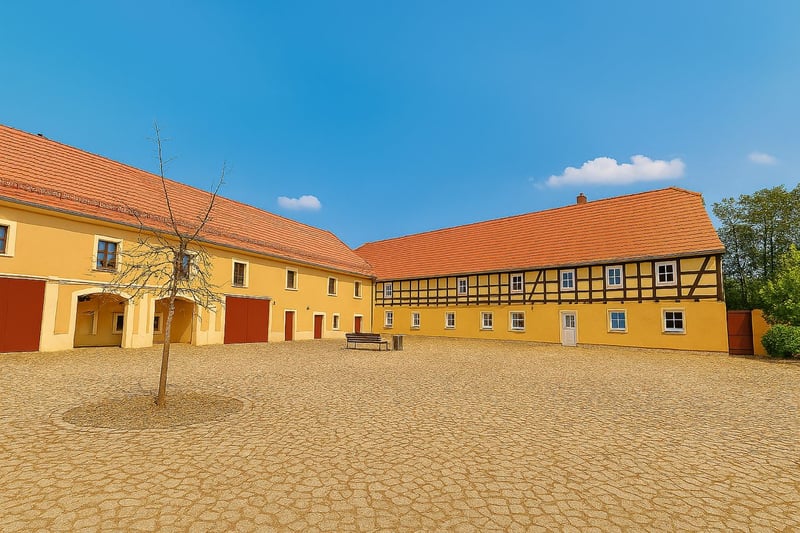 Nieuw gerenoveerd, beschermd monumentaal driezijdig boerderijcomplex in Canitz bij Riesa, met eigen rijbaan en uiterst moderne voorzieningen! Uniek landgoed met geschiedenis en innovatieve techniek. Dit bijzondere driezijdige erf in Canitz bij Riesa combineert historische bouwmaterialen uit circa 1790 met modern wooncomfort en hedendaagse technologie. In de afgelopen jaren is hier een indrukwekkend landgoed ontstaan, dat beschikt over luxe woonruimtes, een moderne rijbaan met stal en andere bedrijfsruimtes, een ruime schuur en extra grote terreinen voor diverse woon- of zakelijke doeleinden. Daarnaast is het eigendom bijna volledig zelfvoorzienend dankzij twee zonnepaneleninstallaties met batterijsystemen en eigen wallboxen, twee bronnen voor waterwinning op het terrein en een hybride verwarmingssysteem (pellet/hout) met buffertank en zonne-energie. Het gehele erf is tussen 2018 en 2022 beschermd gerenoveerd volgens monumentenrichtlijnen, inclusief de buitenaanleg met stal en rijbak. Zo is hier de perfecte combinatie van comfortabel wonen en het realiseren van een paardenliefhebbersdroom gerealiseerd, wat heeft geleid tot een uitzonderlijk object voor liefhebbers. Perceel – 14.860 m² Het ruime perceel heeft een totale oppervlakte van circa 14.860 m². Het woonhuis (ca. 1790) beslaat ongeveer 260 m² woonoppervlak, het middenstuk (ca. 1850) bevat een circa 120 m² grote zelfstandige woonunit, werkplaats, kalkovens met paardenstal (3-4 boxen) en andere bedrijfs- en opslagruimtes, plus een extra uitbreidingsreserve op de zolder. De derde vleugel van het erf bestaat uit de ruime schuur (ca. 1890) met circa 400 m² vloeroppervlak. Twee grote carports met respectievelijk drie en twee parkeerplaatsen, voorzien van wallboxen, maken het indrukwekkende erf compleet. Via een kleine brug bereikt men het terrein en via een videogestuurd poortensysteem komt men op de uitgestrekte, met natuursteen geplaveide binnenplaats. Achter het markante erf strekt het grote perceel zich uit, inclusief een natuurvijver (diameter 30 m, met vijverfolie) met steiger, buitenzitje met barbecue en een massief paviljoen (bouwjaar 2015). De achterliggende gebieden zijn de afgelopen jaren grondig heringericht: in 2022/23 is een volledig overdekte, vorstvrije all-weather paddock (7 x 14 m) aangelegd, aansluitend op een circa 600 m² grote uitloop met Ridcon-platen. Daarnaast is er een eigen rijbak van 70 x 30 m, omringd door meerdere weilanden. Deze zone is voorzien van irrigatiesystemen en volledig omheind. Twee bronnen zorgen voor een onafhankelijke watervoorziening, beheerd via automatische sproeisystemen. Energie & techniek – zelfvoorzienend en slim Het woonhuis is voorzien van binnenisolatie en een op maat ontworpen verwarmingssysteem, met energieklasse B (66,46 kWh). Het landgoed is energetisch zelfvoorzienend en uitgerust met de nieuwste technologie: • Twee zonnepaneleninstallaties (elk 10 kWp) en twee batterijsystemen (totaal 30 kWh) • Fröling S4 Turbo hout/pellet-ketel met 2.850 liter buffertank • Zonne-thermie voor warm water en een 1.000 liter friswaterbuffer • 5,5 kW noodstroomaggregaat voor zelfstandige back-up • Slimme thermostaat- en verwarmingsregeling voor optimale energiebesparing • WLAN-access points over het hele terrein • Starlink highspeed internet • Volledige videobewaking (kantelbaar, IR-geschikt) • Op afstand bedienbare irrigatie- en sproeisystemen • Balkenhoofdsverwarming voor de vakwerkstructuur van het woonhuis • Een wallbox voor elektrisch laden Woonhuis ca. 250 m² woonoppervlak • Drievoudig geïsoleerde houten ramen en binnenisolatie van de muren • Diverse historische details behouden, zoals originele tegels uit 1900 in de entree, gedeeltelijk zichtbare metselwerk en bewerkte zichtbalken • Vloerverwarming op de begane grond, traditionele wandverwarming op de bovenverdieping • Ruime en moderne indeling (woonkamer + 6,5 kamers) • Hoogwaardige eikenhouten vloer in de gehele bovenverdieping • Twee houtkachels (woonkamer en woonkeuken) • Drie daglichtbadkamers, inloopkast, wasruimte met bijkeuken • Keuken en badkamers met hoogwaardige apparatuur en componenten • Extra grote hobby-, feest- of sportkamer op de begane grond • Mogelijkheid tot splitsing in 2-3 wooneenheden • Begane grond is uitgegraven en opnieuw opgebouwd, het huis is drooggelegd Middendeel met zelfstandige woonunit en bedrijfsruimtes, circa 120 m² • 3-kamerappartement op de eerste verdieping met ruime indeling en eigen ingang • Open woon-/eetkamer met schuifdeuren • Badkamer met daglicht en bijkeuken • Extra opslagruimte mogelijk in de zolder Stallen ca. 150 m² plus circa 250 m² opslagruimte • 3-4 grote paardenboxen • Verwarmde waterleidingen en buitenwasplaats • Opslagzolder en werkplaats met historische gewelven ca. 150 m² • Extra ruimte als grote garage te gebruiken • Uitbreidingsreserve op zolder en in de bovenverdieping circa 100 m² Schuur ca. 400 m² vloeroppervlak • Vier grote toegangshekken voor in- en doorrit • Extra opslagruimte mogelijk door het plaatsen van tussenwanden • Kleine kelder, opslagruimtes en overdekte buitenruimtes • Kraaninstallatie, transportsysteem Paardenfaciliteiten • Rijbak (30x50 m) met irrigatie • Overdekte stal (7x14 m) met verwarmde drinkbakken • 600 m² uitloop met vaste omheining, vier weilanden en stevige afrastering • Paardvriendelijke boomgaard Vijvercomplex • Natuurvijver met vijverfolie • Twee toevoerleidingen en een pompinstallatie voor beekwater • Steiger met terrassen en zitplaatsen • Massief paviljoen met mediapunten (mogelijk als gastenverblijf) • Vijver met visbestand, bijvoorbeeld grasskarper Aanvullende inventaris • Houtvoorraad voor 2-3 jaar • Elektrische wiellader, zitmaaier, aanhanger • Diverse machines en accessoires Dit aanbod betreft een zakelijk object. Bij aankoop wordt een makelaarscourtage van 3,57% van de koopprijs in rekening gebracht door Planethome.