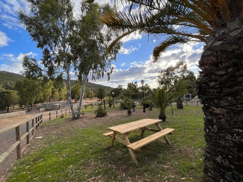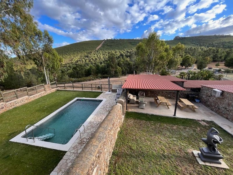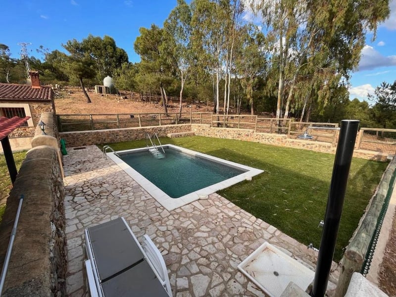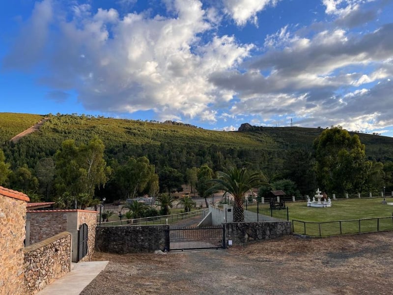 Rustykalny teren do rekreacji i polowań na grubą zwierzynę o powierzchni około 430 ha. Duża część nieruchomości jest ogrodzona, rozmieszczona w Monte pardo, 20 hektarów lasu sosnowego, wrzosu i 160 hektarów eukaliptusa, z 2 repopulacjami dębów korkowych, 30 hektarów dębów ostrolistnych i kasztanowców. Na terenie posiadłości znajduje się około 2.000 drzew oliwnych, 4 stawy i mały zbiornik wodny. Posiada 2 studnie zalegalizowane i zatwierdzone przez Cuenca Hidrográfica del Tajo. Zarejestrowana jako prywatny rezerwat łowiecki z dużą liczbą jeleni, dzików i saren. Posiada plan ochrony przeciwpożarowej zatwierdzony przez rząd regionalny Estremadury. Jest to obszar chroniony dla chronionej fauny: m.in. orła cesarskiego, sępa płowego i czarnego. Posiada nowy dom z salonem i dużą kuchnią, salą gimnastyczną itp. Basen i ogród, ogrzewanie, sieć elektryczna, odwiert wody pitnej. Istnieje również 5 nowych mieszkań wiejskich, 3 z nich mają wspólny basen. Dwa nowe magazyny o powierzchni 700m2. Wspaniała nieruchomość gotowa do cieszenia się naturą. 2 i pół godziny od Madrytu, wszystkie autostrady.