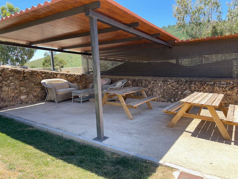 Rustikales Land für Erholung und Großwildjagd von ca. 430 ha. Ein großer Teil des Grundstücks ist eingezäunt, verteilt auf Monte Pardo, 20 Hektar Pinienwald, Heidekraut und 160 Hektar Eukalyptus, mit 2 Wiederbesiedlungen von Korkeichen, 30 Hektar Steineichen und Kastanienbäumen. Das Anwesen verfügt über ca. 2.000 Olivenbäume, 4 Teiche und einen kleinen Stausee. Es verfügt über 2 Brunnen, die von der Cuenca Hidrográfica del Tajo legalisiert und genehmigt wurden. Registriert als privates Jagdreservat mit einer großen Anzahl von Hirschen, Wildschweinen und Rehen. Es verfügt über einen Brandschutzplan, der von der Regionalregierung von Extremadura genehmigt wurde. Es handelt sich um ein Schutzgebiet für geschützte Tiere: Kaiseradler, Gänse und Mönchsgeier, um nur einige zu nennen. Es hat ein neues Haus mit Wohnzimmer und großer Küche, Fitnessraum usw. Schwimmbad und Garten, Heizung, Stromanschluss, Trinkwasserbohrung. Es gibt auch 5 neue ländliche Wohnungen, von denen sich 3 einen weiteren Swimmingpool teilen. Zwei neue Lagerhallen von 700 m2 dazwischen. Ein wunderbares Anwesen, das bereit ist, die Natur zu genießen. 2 1/2 Stunden von Madrid entfernt, alle Autobahnen.