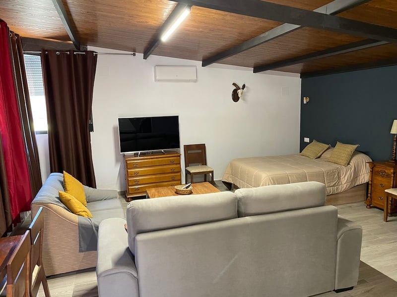 Rustic land for recreation and big game hunting of about 430 ha. A large part of the property is fenced, distributed in Monte pardo, 20 hectares of pine forest, heather and 160 hectares of eucalyptus, with 2 repopulations of cork oaks, 30 hectares of holm oaks and chestnut trees. The estate has about 2.000 olive trees, 4 ponds and a small reservoir. It has 2 wells legalised and approved by the Cuenca Hidrográfica del Tajo. Registered as a Private Hunting Reserve with a large number of deer, wild boar and roe deer. It has a Fire Prevention Plan approved by the Regional Government of Extremadura. It is an area of protected areas for protected fauna: Imperial Eagle, griffon and black vultures, among others. It has a new house with living room and large kitchen, gymnasium, etc. Swimming pool and garden, heating, mains electricity, borehole for drinking water. There are also 5 new rural flats, 3 of them share another swimming pool. Two new warehouses of 700m2 between them. A wonderful property ready to enjoy nature. 2 and a half hours from Madrid, all motorway.