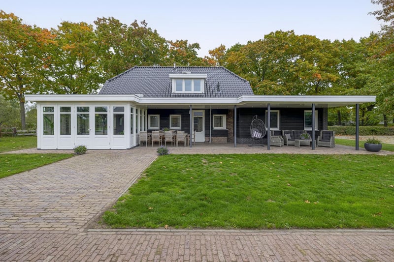 Prachtlocatie voor paardengeluk! Ontdek dit unieke object dat volop mogelijkheden biedt voor het hobbymatig en (semi)professioneel houden van paarden aan huis. Naast de ruim opgezette, levensloopbestendige, vrijstaande woning is er een bijzondere buitenfavoriet: een vrijstaande paardenstal, die met oog voor detail en kwaliteit is afgewerkt. Hoogwaardige materialen zoals RVS accenten en gebakken klinkers geven het geheel een exclusieve uitstraling. De stal beschikt over 6 paardenboxen met een functionele wasplaats. Verder is het perceel uitgerust met een ruime buitenpiste voorzien van een eb/vloedbodem en zorgvuldig aangelegde paddocks – perfect voor de serieuze paardenliefhebber! Neem snel contact op voor een bezichtiging en ervaar zelf de unieke sfeer en alle mogelijkheden die dit pand te bieden heeft! WOONHUIS Begane grond De ruime entreehal biedt toegang tot de woonkamer, slaapkamer, toiletruimte en de meterkast. De royale woonkamer is voorzien van een tegelvloer, stucwerk wanden en een stucwerk plafond. De ruimte is verdeeld in een zitgedeelte en een eetgedeelte. De royale woonkamer is voorzien van een tegelvloer, stucwerk wanden en een stucwerk plafond. De ruimte is verdeeld in een zitgedeelte en een eetgedeelte. De knusse zithoek, met een sfeervolle gashaard, nodigt uit tot ontspannen gezellige avonden. Het eetgedeelte profiteert van een overvloed aan natuurlijk licht en een fraai uitzicht op de paardenstal. In het midden is de keuken gesitueerd. De keuken met spoel/kookeiland en een apparatenwand is uitgerust met een vaatwasser, combi-oven/magnetron, diepvries en een koelkast. De keuken beschikt over veel opbergruimte. De riante slaapkamer met badkamer en-suite is voorzien van een fraaie PVC-vloer in visgraatmotief met strakke stucwerk wanden en een stucwerk plafond voorzien van inbouwverlichting. Door de royale afmeting biedt de ruimte u volop mogelijkheden. Dankzij de vaste kasten is er voldoende opbergruimte aanwezig – een perfecte oplossing voor al uw kleding en accessoires. Er is tevens een airco aanwezig. Vanuit de slaapkamer is er toegang tot de badkamer en-suite. Deze sfeervolle badkamer is geheel betegeld en verder uitgerust met een zeer ruime inloopdouche, een dubbele wastafel met meubel en een zwevend toilet. De ruime inloopdouche biedt met zijn sunshower en infraroodfunctie een ware wellnessbeleving, ideaal om na een lange dag tot rust te komen. Kortom een heerlijke ruimte om te ontspannen. De wasruimte is eveneens bereikbaar vanuit de slaapkamer. Deze praktische ruimte is ingericht met op maat gemaakte kasten, inclusief aansluitingen voor wasapparatuur en mechanische afzuiging, biedt deze ruimte een efficiënte en overzichtelijke oplossing – met als extra voordeel dat de apparatuur op hoogte is geplaatst. Een achterportaal met berging en vaste kasten biedt toegang tot de overkapping en het erf. Ook hier zijn aansluitingen voor de wasapparatuur aanwezig. 1e verdieping De overloop biedt toegang tot 2 ruime slaapkamers en een badkamer. De slaapkamers zijn beide voorzien van een laminaatvloer, stucwerk wanden en een schrootjes plafond. Onder de dakschuinte zijn schuifkasten gecreëerd, welke zorgen voor veel opbergruimte. De badkamer is geheel betegeld en uitgerust met een inloopdouche, een wastafel met meubel en een zwevend toilet. Een dakkapel zorgt hier voor natuurlijke ventilatie en lichtinval. Een luik biedt toegang tot de bergzolder waar de unit voor de airco is gesitueerd. TUIN Ontdek een oase van rust en privacy: de gehele woning wordt omgeven door een buitenruimte ingericht met gazon en bestrating van gebakken klinkers. Het royale overdekte terras aan de achtergevel van de woning vormt de ideale plek om na een lange dag te ontspannen, te genieten van een heerlijk kopje koffie of gezellige momenten met familie en vrienden. Hier ervaart u niet alleen een absolute aangename rust en privacy, maar ook een fraai uitzicht dat de landelijke sfeer compleet maakt. PAARDENSTAL Ontdek deze prachtige, vrijstaande paardenstal; een waar paradijs voor liefhebbers van de paardensport. De stal is gebouwd in een traditionele stijl met metselwerk gevels, waarvan enkele delen zijn gepotdekseld en is afgewerkt met een dak voorzien van sandwichpanelen in een authentiek dakpanmotief. Het geheel wordt afgesloten door openslaande deuren. Het gangpad is uitgerust met gebakken klinkers. De zes paardenboxen, elk voorzien van een rubberen vloer en deels bezette en deels rubberen wanden. De bijzondere RVS draaideuren met bamboe afwerking en het aparte buitenluik per box, dragen bij aan de moderne uitstraling en functionaliteit. De zadelkamer is afgewerkt met stucwerk wanden, een houten balkenplafond en een betonnen vloer. Deze ruimte is uitgerust met aansluitingen voor de wasapparatuur, een beregeningspomp, een groepenkast en de stroomvoorziening voor het weiland. Voor extra comfort beschikt de stal over een toiletruimte, welke is ingericht met een zwevend toilet, een urinoir en een wastafel. De wasplaats voorzien van een rubberen vloer en wanden, is uitgerust met warm- en koudwatervoorziening, zodat uw paarden altijd kunnen genieten van optimale verzorging. Tot slot biedt de aparte opslagruimte, voorzien van een betonnen vloer, bezette wanden en een geïsoleerd dak, met openslaande deuren en een loopdeur, de perfecte plaats om benodigdheden en materialen veilig op te bergen. Deze paardenstal combineert functionaliteit en comfort met een doordachte indeling en kwaliteitsafwerking – de ideale investering voor serieuze paardenliefhebbers die houden van oog voor detail en uitstekende faciliteiten. Welkom in uw nieuwe ruiterparadijs! OVERIGE FACILITEITEN De buitenpiste heeft een afmeting van ca. 25 mtr. x 50 mtr. en is voorzien van een eb/vloedbodem. Het weiland is verdeeld in 5 paddocks. Deze paddocks zijn uitgerust met automatische drinkbakken. De omheining is van hout, extra hoog. Het erf is afsluitbaar met een automatische poort. BIJZONDERHEDEN – Het geheel is aangesloten op de riole