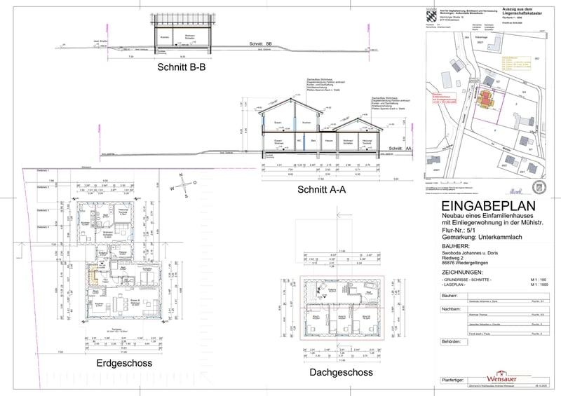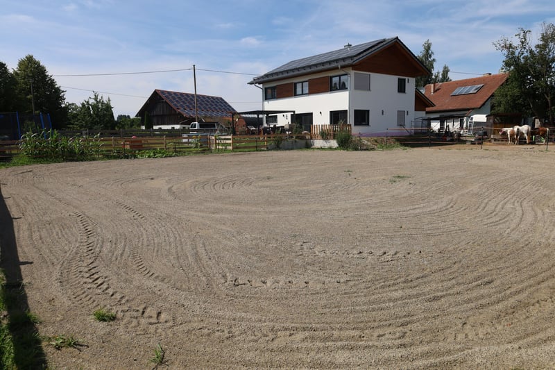 Ein exklusives Anwesen, dass es in dieser Kombination nur selten gibt: Möglichkeiten zur Pferdehaltung direkt am Haus oder großzügiger Gartengestaltung auf 1786 qm sowie ruhiges, erholsames Landleben vereinen sich hier mit modernem, hocheffizientem Wohnen in perfekter infrastruktureller Anbindung. Objektbeschreibung: Das 2021 errichtete KFW 40+ Haus umfasst ca. 220 qm Wohnfläche auf 2 Etagen und bietet freie Entfaltungsmöglichkeiten für Familien. Im EG überzeugt eine Sichtholzdecke, im OG ein offener Sichtdachstuhl, wodurch in den oberen Räumen zusätzlich eine Empore einziehbar wäre. Beide Etagen sowie die kleine Einliegerwohnung sind mit allen Anschlüssen für Küchen sowie mit barrierefreien Bädern und Toiletten ausgestattet. So ergeben sich individuelle Nutzungsmöglichkeiten. Alle baulichen Leistungen wurden durch regionale Handwerksbetriebe durchgeführt, sodass Sie hier hochwertiges, wertstabiles Wohnen und durchdachte Raumaufteilung für Ihren Wohntraum finden werden. Es stehen insgesamt 10 Zimmer in gehobener Ausstattung zur Verfügung. Eine hochwertige Insel-Einbauküche bildet das Herzstück des hellen Wohnzimmers, welches direkten Zugang auf die großzügige Terrasse mit Pergola ermöglicht. Von dort aus genießen Sie den weitläufigen Garten bzw. die Pferdeanlage, wo Sie ihre Tiere direkt vor Ihrem Haus beobachten können. Bei der Errichtung der Pferdeanlage wurde auf leichte Rückbaubarkeit geachtet, sodass die gesamte Fläche auch für andere Wünsche rasch zur Verfügung stehen kann. Ein Hühnerhaltungsareal mit 2 Hühnerställen, rundet den Garten nach Osten hin ab. Vereinbaren Sie jetzt Ihren Besichtigungstermin und kommen Sie ihrem Wohntraum ein Stück näher! Besichtigungsanfragen nehmen wir aus organisatorischen Gründen gerne per Email entgegen. Verfügbar ist das Objekt nach Absprache. Ausstattung Fliesen, Parkettböden, Fußbodenheizung, Barrierefreie Bäder, El. Rollos, Lüftungsanlage mit Wärmerückgewinnung, LAN, Kamin... Lage Kammlach lässt keine Wünsche offen: Sie befinden sich in einer familienfreundlichen Gemeinde im schönen Unterallgäu, wo die Welt noch in Ordnung ist. Der Ort verfügt über Grundschule, Kindergarten, Kita, vielfältiges Sportangebot sowie reichlich Vereinsleben. Ein Supermarkt befindet sich direkt im Ort. Die naturnahe Umgebung mit Wäldern, Rad- und Wanderwegen bietet hohen Freizeit- und Erholungswert. Gleichzeitig erreichen Sie die Kreisstadt Mindelheim in 10 Autominuten, wo Sie alle Annehmlichkeiten der Stadt sowie weiterführende Schulen finden. Verkehrstechnisch besticht Kammlach durch seine Lage und Anbindung: Der Autobahnanschluss A96 ist nur 5 km entfernt. Von dort aus erreichen Sie München in 60 min, Ulm und Augsburg in 50 min. In den Allgäuer Alpen sind sie ebenfalls in ca. 1 Stunde. Sonstiges Für Pferdehalter: Der Reitplatz (ca. 20x20m) ist professionell mit RIDCON- Platten befestigt und besandet, genauso wie die Paddock-Fläche (ca. 20 x 6 m), wo sich ein Offenstall (ca. 3 x 6m) mit Sattelkammer befindet. Zusätzlich gibt es eine von außen befüllbare Raufe. Es besteht eventuell bei Bedarf die Möglichkeit, ca. 1,5 h Koppelfläche in unmittelbarer Umgebung extern dazu zu pachten. Zusätzlich kann die jetzige Heuversorgung und Mistentsorgung weiter genutzt werden. Weitläufiges Ausreitgelände ist verkehrsfrei direkt erreichbar. Im Technikraum befindet sich ein 3-Kammer-Pufferspeicher für Heizung und Warmwasser, welches durch eine Brötje Luftwärmepumpe erwärmt wird. Zusätzlich gibt es eine Wasserenthärtungsanlage sowie einen BYD-Batteriespeicher, der den Strom der PV-Anlage zur Eigennutzung speichert.