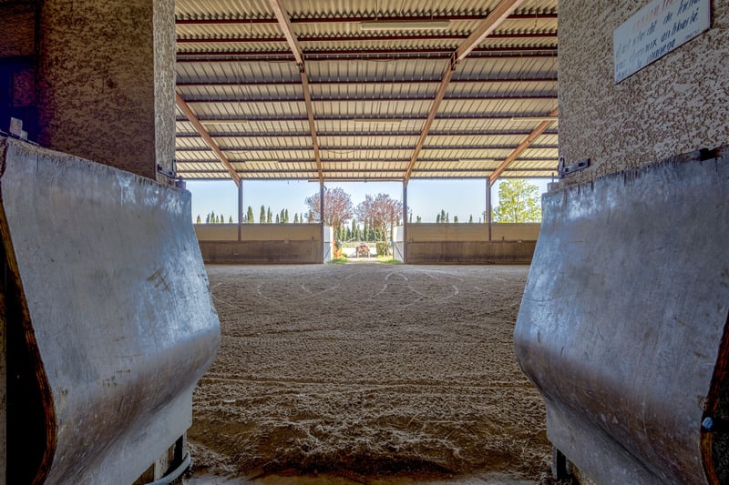 Entdecken Sie diese Reitanlage, die im Jahr 2008 erbaut wurde und sich auf einem Grundstück von 2,5 Hektar befindet. Sie umfasst: - Eine Stallung mit 20 Boxen à 3 x 3,5 m, ausgestattet mit automatischen Tränken, zwei Sattelkammern, einem Technikraum, einem Büro und einem großen Clubhaus mit barrierefreien Sanitäreinrichtungen. - Ein Dressurviereck 40 x 20 m mit Vallabrix-Sandboden, automatischer Bewässerung und Beleuchtung. - Eine Reitbahn 40 x 80 m mit Vallabrix-Sandboden, automatischer Bewässerung. - Ein überdachter Laufstall für vier Pferde. - Etwa zwanzig Paddocks mit Holzzäunen, automatischen Tränken und Unterständen. - Ein Lagerhalle. - Eine 60 m tiefe Grundwasserbohrung, die die gesamte Anlage versorgt, sowie eine jährliche Pacht für die Nutzung des Daches für Photovoltaik. Der Betrieb für Pferdetransit kann übernommen werden. Die Informationen zu den Risiken, denen dieses Objekt ausgesetzt ist, sind auf der Website Géorisques verfügbar: https://www.georisques.gouv.fr/ Das Grundstück liegt in einem Gebiet, das der gesetzlichen Bepflanzungspflicht (OLD) unterliegt. (*) Der angegebene Preis beinhaltet die vom Verkäufer getragenen Provisionen: 27.000 € inklusive Mehrwertsteuer.