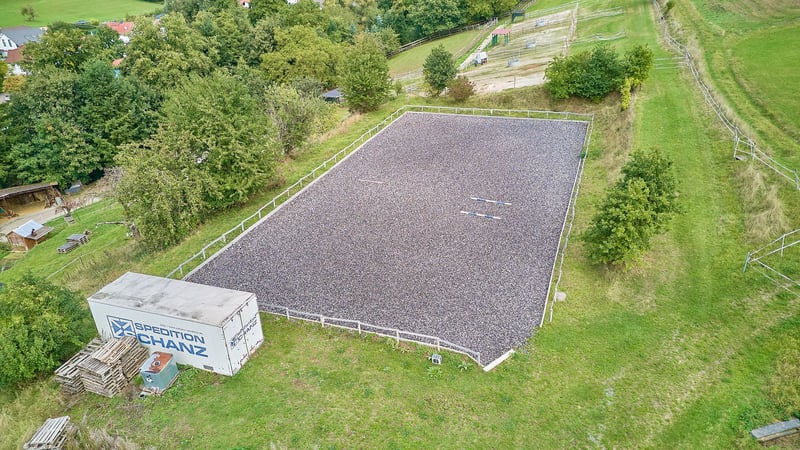 Pferdeimmobilie in Hessen im Landkreis Darmstadt-Dieburg zu verkaufen! Objektbeschreibung: Dieses außergewöhnliche Anwesen in einem Ortsteil von Groß-Bieberau bietet optimalen Bedingungen für Pferdeliebhaber. Das rund 18.379 m² große Grundstück (zzgl. weitere gepachtete Koppeln) umfasst ein Wohnhaus mit separater Wohnung, einen gepflegten Innenhof, zahlreiche Stallungen, eine moderne Reithalle sowie weitläufige Koppeln und einen Reitplatz. Das Wohnhaus, ein Fachwerkbau aus dem Jahr 1830, bietet ca. 160 m² Wohnfläche und wurde über die Jahre umfangreich saniert und modernisiert. Strom- und Wasserleitungen wurden 2008 erneuert, zwischen 2007 und 2011 erfolgten weitere Modernisierungen. Eine Holzpelletheizung aus 2013 sorgt für effiziente Wärme. Ein Wintergarten, eine Doppelgarage und der gepflegte Garten unterstreichen die Wohnqualität. Zusätzlich steht eine separate Wohnung mit ca. 110 m² Wohnfläche zur Verfügung, die 2013 modernisiert wurde. Der große, gepflasterte Innenhof bildet das Herzstück des Anwesens. Hier befinden sich eine Scheune mit Stallungen, Reiterstübchen, Sattelkammer sowie 9 Innenboxen und ein großzügiges Heulager. Hinter der Reithalle liegen weitere 7 Außenboxen inkl. beheizbarer Tränkenleitungen mit abschließbarer Sattelkammer und Maschinenunterstand. Besonders hervorzuheben ist die moderne Reithalle (Baujahr 2016) der Firma Römmelt (30 x 15 m) mit Sand-Textilboden aus 2021, ergänzt durch einen Reitplatz von ca. 20 x 40 Metern mit Allwetterboden (2019). Mehrere Koppeln und Winterpaddocks schließen direkt an den Hof an, zusätzlich stehen gepachtete Koppelflächen (1,4 ha) zur Verfügung. Ein Offenstall, eine Mistplatte (2021 erneuert), ein Brunnen sowie Heulagerflächen für rund 60 Rundballen runden die Reitanlage ab. Zwischen 2019 und 2023 wurden zahlreiche Modernisierungen im Außenbereich umgesetzt, u. a. Stromleitungen, Lauf- und Fahrwege, Winterpaddocks sowie Dachsanierung eines Scheunenteils. Ideal für Pferdeliebhaber, die Ruhe und die Nähe zu Darmstadt schätzen. Ausstattung: Wohnhaus: - Baujahr: 1830 - Wohnfläche: ca. 160 m² - Heizung: Holzpellets aus 2013 - Bauweise: Fachwerk - Fenster: Kunststoff, Doppel-Verglasung - Boden: Fliesen - Dach: Satteldach, Ziegel, gedämmt - Sanierungen: Strom- und Wasserleitungen 2008 - Modernisierungen: 2007 bis 2011 neue Fliesen, Bäder, Heizkörper - Toreinfahrt Überdachung 1964 - Doppelgarage 1975 Einliegerwohnung: - Baujahr Gebäude: 1830, Einbau Wohnung vermutlich 2013 (Bauakte ist angefragt) - Wohnfläche: ca. 110 m² - Sanierungen: Strom- und Wasserleitungen in 2008 - Modernisierungen: 2013 neue Fliesen, Bäder, Heizkörper - Gartenzugang Innenhof: - Große Scheune mit Stallungen - Reiterstübchen - Sattelkammer & Futterkammer - Heizungsraum mit Holzpellet-Heizung und Speicher Stallungen (Innenhof): - Baujahr Gebäude 1830 - 9 Pferdeboxen - Heulager Stallungen (hinter Reithalle): - Baujahr 1960 - 7 Außenboxen (3 x 4 Meter) - Tränken vorhanden (Leitungssysteme der Tränken beheizbar) - Sattelkammer (abschließbar) - Maschinenunterstand Reithalle: - Baujahr 2016 - Reitmaß 30 x 15 Meter - Boden: Sand-/Textilgemisch aus 2021 - Hersteller: Firma Römmelt Reitplatz: - Maße: ca. 20 x 40 Meter - Boden: Allwetter-Boden (AS Ground, Drainage) - Erneuerung des Reitplatzes in 2019 Koppeln / Winterpaddocks: - 3 befestigte Winterpaddocks - mehrere Koppeln am Hof - ca. 1,4 ha Pachtkoppel direkt angrenzend an den Eigentum Weiteres: - Offenstall auf einer Weide - Mistplatte (überdacht) 2021 - Brunnen - Heulagerung insgesamt für rund 60 Rundballen Lage: Groß-Bieberau befindet sich etwa 15 Kilometer südöstlich von Darmstadt und damit im direkten Einzugsbereich des Rhein-Main-Gebiets. Über die Bundesstraße B426 ist der Ort schnell mit dem regionalen Straßennetz verbunden. Die nächste Autobahnanschlussstelle an die A5 bei Darmstadt-Eberstadt liegt rund 20 Kilometer entfernt und ermöglicht direkte Verbindungen Richtung Frankfurt am Main, Wiesbaden/Mainz sowie Heidelberg und Karlsruhe. Auch die A67 und die A3 sind innerhalb von etwa 20 bis 25 Minuten erreichbar. Der internationale Flughafen Frankfurt am Main ist in nur rund 40 bis 45 Autominuten erreichbar. Die Immobilie befindet sich in einem Ortsteil von Groß-Bieberau, einer ruhigen und naturnahen Wohnlage im vorderen Odenwald. Der Hauptort Groß-Bieberau mit seiner guten Infrastruktur ist in wenigen Minuten erreichbar. Hier stehen sämtliche Einrichtungen des täglichen Bedarfs zur Verfügung: mehrere Supermärkte, Bäckereien, Metzgereien sowie Apotheken und Arztpraxen. Für Familien ist das Bildungsangebot sehr attraktiv: In Groß-Bieberau gibt es mehrere Kindergärten, darunter katholische, städtische und private Einrichtungen. Die Grundschule vor Ort deckt die Grundschulbildung ab, während weiterführende Schulen wie die Odenwaldschule Groß-Bieberau (Realschule und Gymnasialzweig) sowie Gymnasien und Berufsbildende Schulen in Darmstadt und Umgebung gut erreichbar sind. Auch die Freizeitmöglichkeiten sind vielfältig: Neben Sport- und Kulturvereinen gibt es Hallen- und Freibäder, Spiel- und Sportplätze sowie zahlreiche Wander- und Radwege in der umliegenden Natur. Einkaufsmöglichkeiten für den größeren Bedarf finden sich zusätzlich im nahegelegenen Darmstadt. Der Ort selbst zeichnet sich durch dörflichen Charakter, eine ruhige Wohnatmosphäre und kurze Wege in die Natur aus. Die Nachbarschaft ist geprägt von Einfamilienhäusern und gepflegten Gärten, was ein angenehmes Wohnumfeld schafft. Gleichzeitig bietet die Lage alle Vorteile einer modernen Infrastruktur, sodass Familien, Paare und Senioren hier gleichermaßen ein komfortables und naturnahes Zuhause finden. Energieausweis: Wesentlicher Energieträger: Holz-Pellets Bedarfsausweis Endenergiebedarf: 111,86 kWh/(m²*a) Energieeffizienzklasse: D Baujahr laut Energieausweis: 2013 Weitere Informationen: Ein unbefugtes Betreten der Reitanlage außerhalb einer Besichtigung mit dem