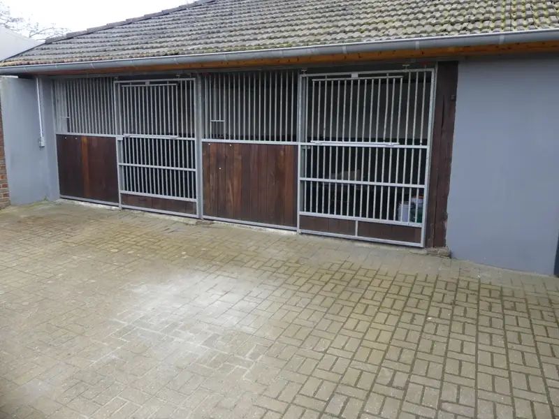 Te huur zijn hier 2 pas gerenoveerde appartementen met elk ca. 60 vierkante meter woonruimte, evenals een compleet nieuw gebouwde paardenstal met 4 paardenboxen, zitkamer, toilet, zadelkamer, poets- en verzorgingsruimte, hooi en stroopslag en ca. 2.600 m² hoogwaardig, pas omheind weiland. De bouw van een rijbak is mogelijk. Gebruik als fokkerij, stalgemeenschap, boxonderhuur etc. is ook denkbaar. Een waterput met grondwaterpomp voor irrigatie is aanwezig. Het is mogelijk om de stallen te huren zonder appartement. De genoemde prijs heeft betrekking op een appartement en faciliteit. De faciliteit bevindt zich in 47608 Geldern-Lüllingen.