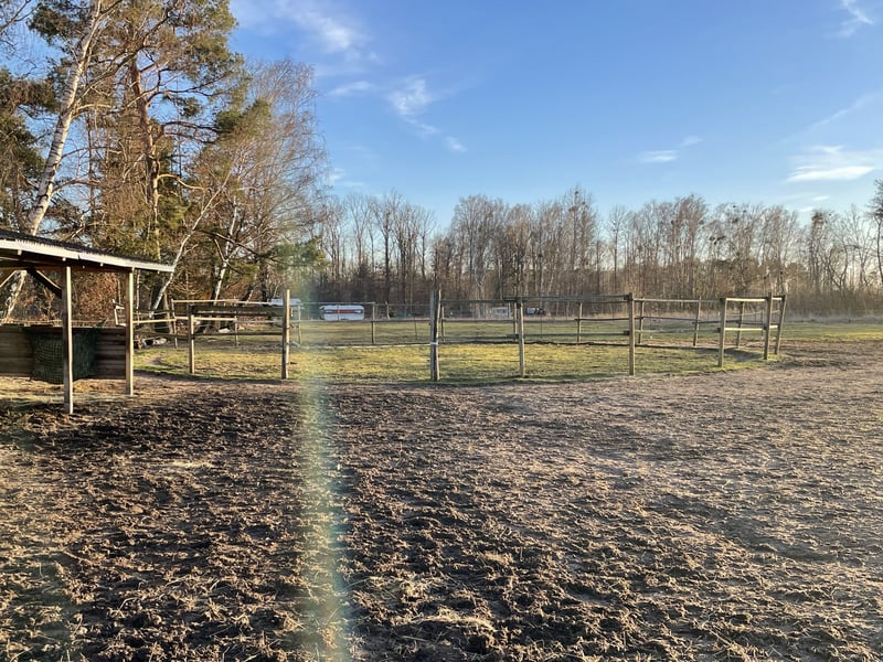 Der Draussenhof in Bruchmühle/Altlandsberg stellt um von Pension auf Haltergemeinschaft und hat noch Plätze frei :) Möchtest du mitreden beim Zuhause deines Pferdes? Ideen einbringen, Träume umsetzen, Kosten sparen? Klar bedeutet Haltergemeinschaft auch Mitarbeit, Arbeitseinsätze und regelm. Treffen. Schau hier bitte ehrlich, ob das bei dir geht. Zum Platz für dein Pferd: Das Heu wird im Moment aus Netzen gefüttert. Also kein 24/7-Heuangebot, dafür ganzjähriger Weidegang – kein Anweiden. Wenn dein Pferd (oder mehrere) ständig Heu braucht, müssen wir schauen, wie es machbar ist. Jedes Pferd wird immer Zugang zum Heu haben, auch wenn es rangniedrig ist. Es wird immer mehrere kleine Fressplätze geben, wo das Futter in Bodennähe angeboten wird. Das Wasser wird in Badewannen angeboten, damit die Pferde so natürlich, wie möglich trinken können. Außerdem ist es am hygienischsten, da sich keine Bakterien in kleinen Rohren ansammeln können. Ich bin aber auch aufgeschlossen, ein anderes System zu installieren um Arbeit zu verringern. Der Dienst umfasst im Moment das Abäppeln des Paddocks, Heunetze für die Nacht und Wasser auffüllen. Auch mal mit jemandem einen Ballen rollen, falls nötig. Im Winter wird zusätzlich früh Heu gefüttert. Im Moment leben zwei Pferde auf dem Hof. Eine Isistute und ein Tinker-Spanier-Mix. In Bälde ziehen noch Esel ein und einige Shettys. Wir haben zwei Sattelkammern, Kaffeemaschine und Kühlschrank :), Komposttoilette, Strom, fliessend Wasser, beleuchteter Anbindeplatz einen teilbleuchteten Reitplatz, Roundpen 17m und schönem Ausreitgelände. Trail wäre möglich, wenn du Zeit und Lust hast, einen anzulegen :) Bushaltestelle (Radebrück Kreuzung) fußläufig erreichbar. Zu meiner Person: Ich habe seit 39 Jahren Erfahrung mit Pferden, vor 15 Jahren erwarb ich mein erstes Pferd, stellte es 2 Jahre in Pensionen ein und entschied mich dann für die Selbstversorgung, weil ich in 5 Pensionen die unterschiedlichsten Mängel in der Pferdehaltung kennengelernt habe (wie Wassermangel im Sommer, Heumangel bei rangniedrigen Pferden durch zu wenige Heuraufen, Heulagefütterung und ihre Auswirkungen, Zerstörung des Bodens durch unsachgemässe Bewirtschaftung (Matsch im Herbst und Stollen im Winter mit Beinbruchgefahr fürs Pferd, um nur wenige zu nennen). All das führte zu der Entscheidung, es selber machen zu wollen. Ich habe seitdem etliche Weiterbildungen gemacht, wie Centered Riding, Shiatsu am Pferd, Bowen für Pferde, klassische Reitkunst bei verschiedenen Ausbildern, erste Hilfe am Pferd, mehrere Jahre Persönlichkeitstraining mit Pferden (Nancy Franke/ Werneuchen) und bin zertifizierte Geländereiterin der DWU. Ich habe ein Jahr Praktikum beim Reitprojekt „Ira“ am Johannesstift in Spandau absolviert und die Ausbildung zur Reittherapeutin bei Kirsten Bruchhäuser vom Reithof Maruschka in Meuselko. Mein Fazit aus dem allen ist Respekt und Freiwilligkeit in der Arbeit mit Mensch und Pferd. Der Draussenhof ist Projektpartner eines sozialen Trägers in Marzahn, weshalb ich mit Kollegen auf dem Hof mit Kindern und Jugendlichen arbeite. Außerdem leite ich die Firma „Draussenzeiten“ (www.draussenzeiten.de) mit der ich seit 2014 Feriencamps für Kinder dort anbiete. Wenn du Interesse an einem Platz für dein Pferd hast, schreibe gerne eine Kurz- (oder Lang- ;) beschreibung von dir – ich freue mich!