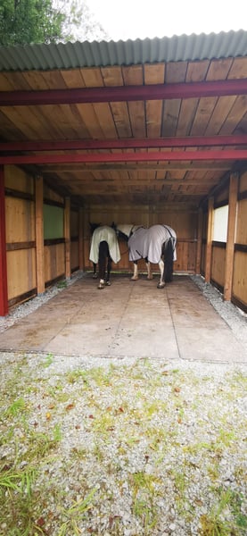 Wenn du für dein Pferd einen Platz mit viel frischer Luft und Auslauf in einer kleinen ruhigen Gruppe (3 Pferde) suchst bist du bei uns genau richtig. Zu den großen Koppeln und der Heuraufe außerhalb des Unterstands haben die Pferde ständigen Zugang. Der Unterstand ist mit Matten ausgelegt und im Winter zusätzlich mit Stroh eingestreut. Bei starkem Bremsenflug im Sommer wird hier zusätzlich Heu aus Netzen angeboten, damit die Pferde in Ruhe fressen können. Der Offenstall liegt etwas außerhalb. Direkt vor Ort hast du die Möglichkeit deinen Sattelbock u dein wichtigstes Equipment zu lagern. 10 Min fußläufig bzw 2 Min mit dem Auto entfernt gibt es im Ort noch eine Futter- u Sattelkammer, in welcher du deinen Schrank mit weiterem Equipment lagern kannst. Hier gibt es auch noch einen überdachten/beleuchteten Putz Platz u eine Möglichkeit dein Pferd zu duschen. 1x täglich wird abgemistet und bereitgestelltes Mineral/Kraftfutter gegeben. Auch Medikamente, welche über das Futter verabreicht werden, sind kein Problem. Gegen Aufpreis sind auch weitere Leistungen möglich (zb Wahrnehmung von Hufpflege oder Tierarzt Terminen, Vollversorgung von Rentner wäre auch denkbar... Kann alles besprochen werden) Wir haben zwar keinen Reitplatz dafür ein wundervolles Gelände. Somit für Freizeitpferde oder Rentner möglich. Wenn dein Pferd verträglich, max 1,55m groß, zaunsicher und hinten unbeschlagen ist freuen wir uns auf euch. Der Stall ist von Murrhardt und Großerlach je 10Min entfernt.