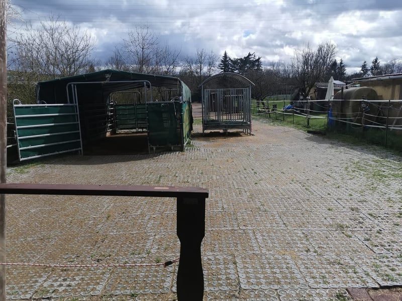 Wir haben noch zwei Plätze in einem Offenstall in Eltville für Selbstversorger frei. Es gibt einen matscharmen, mit Paddockplatten ausgelegten Offenstall mit - einer mobilen Box und einem großen und einem kleinen Weidezelt, - mehreren IBC-Tanks und Tränken, - zwei Wassertanks und zwei Tränken, die im Winter beheizt werden können, - zwei abschließbaren Sattel- und Futterkammern und - zwei Heuraufen mit Heunetzen. - Im Winter bekommen die Pferde 24/7 qualitativ-gutes Bio Heu. - Wir haben eine Photovoltaik Anlage zur Rundumbeleuchtung des Stalles, die mit regelmäßig aufgeladener Batterie super funktioniert. - Die Pferde und der Stall werden von uns mit Kamera videoüberwacht. Im Sommer stehen die Pferde Tag und Nacht auf den Weiden mit Unterstellmöglichkeiten/Baumbestand, die ca 5 Minuten zu Fuß von dem Paddock entfernt sind. (Die Fotos sind teilweise etwas veraltet; unsere Weiden sind aus Sicherheitsgründen mit einem Holzzaun eingezäunt.) Es ist ein viereckiger, ebener Platz aus Erde vorhanden, der ca 20m×30m groß ist. Dieser ist leider natürlich nur wetterabhängig nutzbar. Für Wasserlieferung und Mistentsorgung wird gesorgt. Deine Aufgaben als Selbstversorger bei uns wären: - den Anteil für dein Pferd misten, - zusammen mit uns auf das Wasser achten und verteilen, - (während der Wintermonate und ggf im Sommer, je nach Graswachstum,) alle paar Tage gemeinsam mit uns einen Heuballen in die Raufen schieben, - Putzplatz, Sattelkammer, etc selbstverständlich sauber halten und - bei gemeinschaftlichen Arbeitseinsätzen als Stallgemeinschaft helfen. Wunderschöne Ausreitmöglichkeiten sowohl in die Weinberge direkt ab dem Stall und in den nahegelegenen Wald als auch an den Rhein. Der Stall ist sehr gut mit den öffentlichen Verkehrsmitteln zu erreichen, dieser befindet sich am Rande von 65343 Eltville am Rhein. Die Pferde dort sind 75cm bis 1,58m groß, 3 bis 13 Jahre alt und es ist eine Herde, die andere Pferde schnell akzeptiert. Wir sind eine kleine Stallgemeinschaft und wünschen uns ein freundliches und hilfsbereites Miteinander. Die Wallache müssen herdenverträglich und hinten unbeschlagen sein. Bitte keine Kaltblüter oder schwere Warmblüter und keine Stuten! Pro Selbstversorger-Platz nehmen wir mtl. 250€ plus i.d.R. 50€ pro Pferd für Heu (1 Ballen pro Monat). Dazu kommen 30€ für die Beteiligung an Benzingeld/ Wasserbe- und Mistentsorgung. - Außer, du hast ein Auto mit Anhängerkupplung und kannst regelmäßig dich an der Mistentsorgung beteiligen und bringst dir deinen Wasseranteil selber mit. Bei Fragen und Interesse gerne melden.