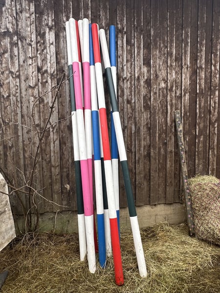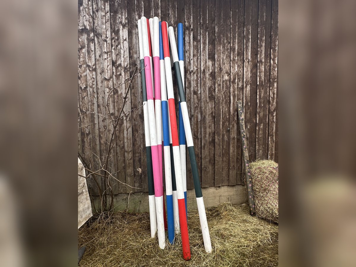 Sprunstangen, Parcoustangen 3x Pink 3x Grün 2x Blau 2x Rot Länge 3m Durchmesser: 8cm Noch unbenutzt Qualitativ hohe und Wetterfeste Farbe. Selbst bemalt. Nur Abholung Preis: 300VB