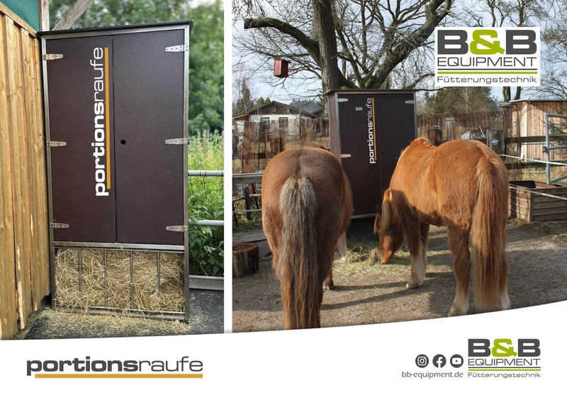 Optimieren Sie Ihre Fütterung für Ihr Pferd – mit unserem zeitgesteuerten Portionsschrank - effizient & durchdacht füttern. Mit der hochwertigen portionsraufe von B&B equipment versorgen Sie Ihr Pferd regelmäßig, strukturiert und ganz ohne Stress ob für Sie oder Ihr Pferd. ✅ Zeitgesteuerte Fütterung möglich ✅ 3 Modellvarianten mit unterschiedlichen Fassungsvermögen ✅ Mehr Ruhe für Ihr Pferd durch geregelte Fresszeiten ✅ Für Heu, Möhren & mehr geeignet ✅ Robuste, langlebige Bauweise – 100 % wetterfest ✅ Für Innen- & Außenbereich geeignet (keine Überdachung nötig) ✅ Lieferung komplett montiert & sofort einsatzbereit 👉 Ideal für alle Pferde mit besonderen Bedürfnissen bei der Fütterung. Sorgen Sie für eine pferdegerechte, gleichmäßige Fütterung – einfach, zuverlässig und zeitsparend. ✔ Made in Germany – Qualität, auf die Sie sich verlassen können Bei Fragen einfach melden - wir beraten Sie gerne! Mehr Infos: bb-equipment.de - Instagram - Facebook