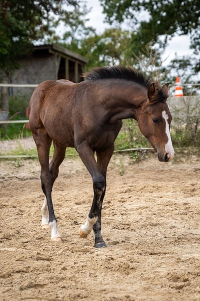 Willow ist eine vielversprechende,vielseitig veranlagte Stute . Diese menschenbezogene und immer freundliche Stute ist mit 3 hervorragenden GGA ausgestattet. Beim Fohlenchampionat in Bad Segeberg wurde sie Rassesiegerin der kleinen Deutschen Reitpferde. Ihr Vater Noble Dance ,147 cm, wurde 2024 Bundeschampion der 3-jährigen Reitponyhengste . Ihre Mutter ist ein 160 cm große Holsteiner Stute von Lucky Champ , Stamm 4815. Willow kann November/Dezember in ihr 5 Sterne zuhause ziehen.