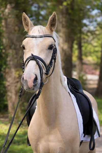 Selbstgezogener Barbietraum sucht Bestplatz ♥️ Elitehengst Cadlanvalley Sir Ivanhoe x Fürst Frederick x Roboter Schicker 4j Wallach mit einem derzeitigen Stockmaß von 1,47. Seine Mutter und Geschwister sind alle spät gewachsen. Es wird ein Endmaß von mindestens 1,55m erwartet. Cotton Eye Joe wurde von uns gezüchtet, ist bei uns aufgewachsen und wird nun von uns schonend angeritten. Er ist vollkommen unverbraucht und hat in seinem Leben keine schlechten Erfahrungen gemacht. Im Umgang und in der Arbeit zeigt er sich super menschenbezogen, brav und lernwillig - so macht die Arbeit mit ihm einfach Spaß. Er verfügt über drei überdurchschnittliche Grundgangarten mit einem guten GO und macht auch einen sehr guten Freisprung und erste kleine Gymnastiksprünge unter dem Reiter. Da wir uns die Möglichkeit zur Körung offenhalten wollten, wurde er erst 3jährig kastriert, zeigt aber keinerlei Hengstmanieren. Ein vielversprechendes Kleinpferd zum weiter ausbilden. Er bringt alles mit um ein toller sportlicher Begleiter zu werden, aufgrund seines grundehrlichen Charakters können wir ihn uns zukünftig aber auch absolut als Kinderpony vorstellen. Ein Pferd für die ganze Familie. Mehr Informationen gerne auch via WhatsApp oder telefonisch unter +49 173 7359633