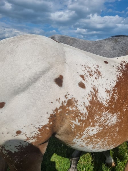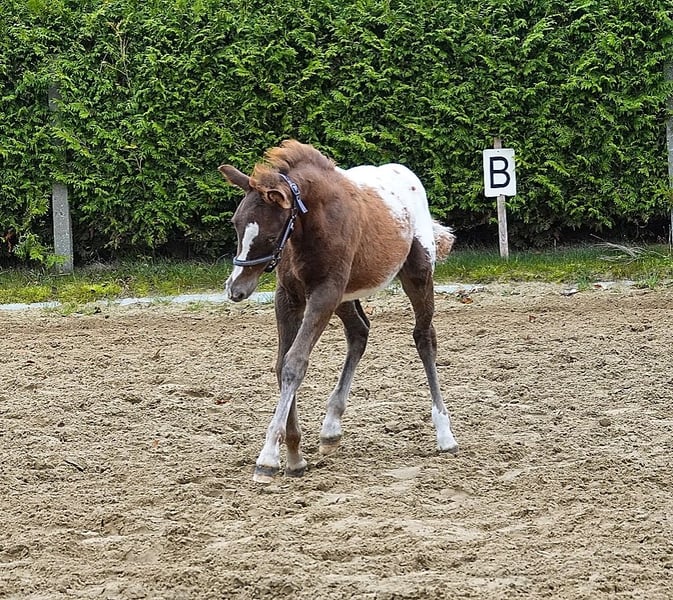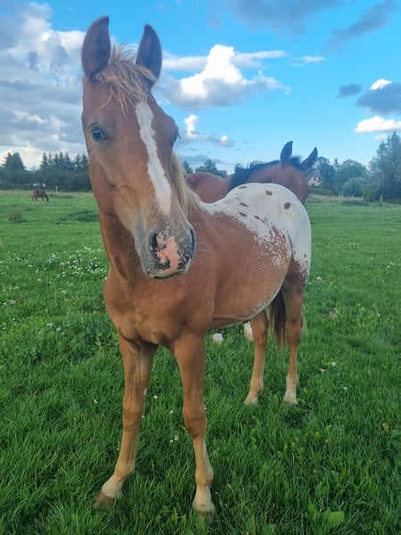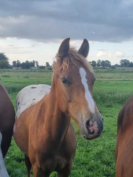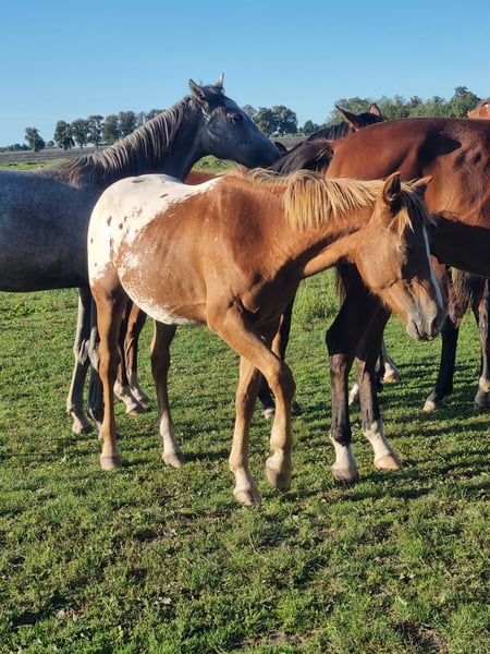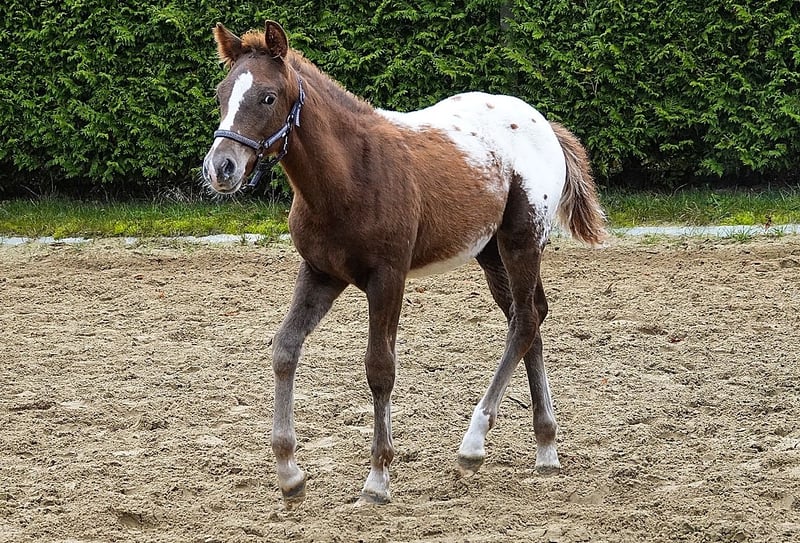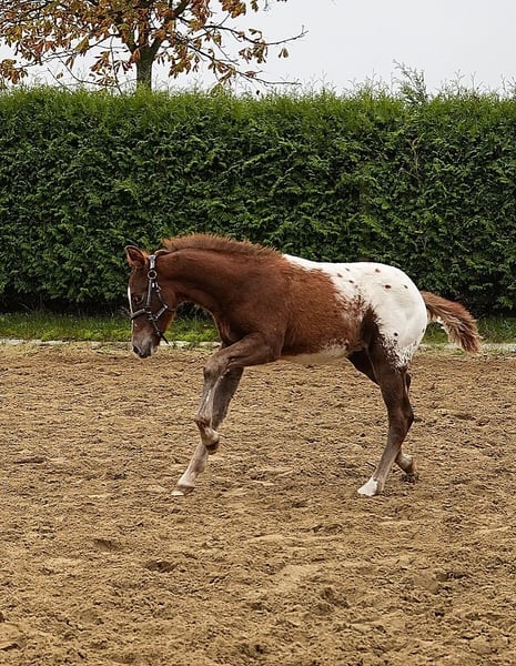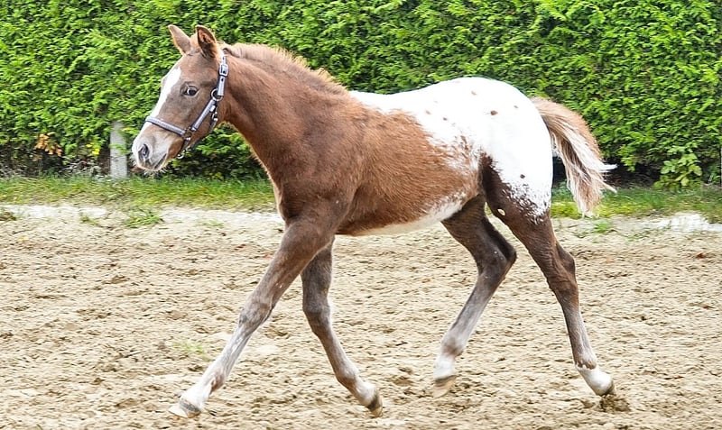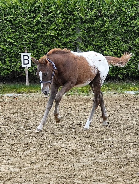 Hallo Verkaufe hier meinen Junghengst Spotted Diabolo, er ist geimpft und gechippt, Pass wurde gerade beantragt. Die Farbe nennt man Fuchsschabrack- Tigerschecke, allerdings ist er mehrfarbig (diverse Brauntöne, sowie teilweise schwarz). Es ist möglich, dass er das "Roan-Gen" in sich trägt, da die Mama getesteter Roan ist (nicht weiter bei Spotti getestet). Spotti ist sogar Farbwechsler, im Sommer ein heller Fuchs und im Winter ist er ein Dunkelfuchstiger. Er läuft als Freizeitpferd (ohne Ahnenpass). Spotti wird wie seine Eltern um die 1,55m +/- 3cm. Der kleine Hengst verfügt über schöne Gänge, ein gutes, stabiles Fundament und einen ehrlichen Charakter. Aufgrund des jungen Alters wird definitiv noch Erziehung benötigt, dabei sollte man liebevoll und konsequent sein. Er möchte regelmäßig gearbeitet werden. Für ein Leckerli macht er sehr viel. Seine Mutter ist ein schweres Warmblut (o.P.) und der Vater ein Knabstrupper (o.P.), beide sehr gute Springer. Der Opa von dem Kleinen ist Knabstrupper Olaf (Showpferd auf Facebook). Falls Interesse besteht gerne melden. LG Die Abgabe erfolgt aufgrund von Bestandsverkleinerung und Zeitmangel