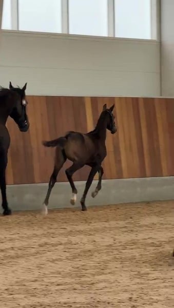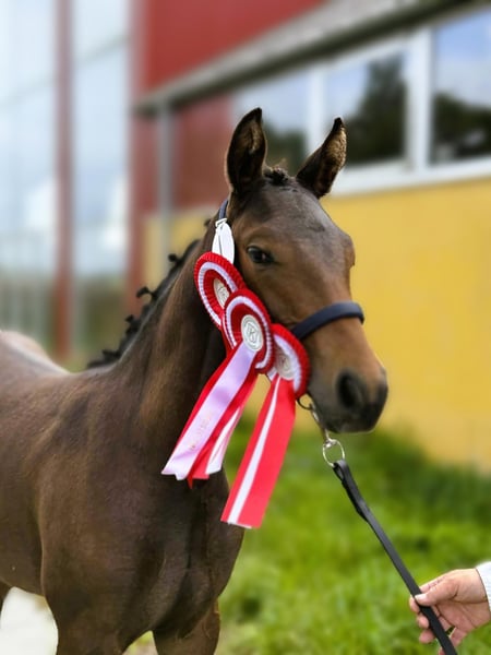 Knabstrupper Sportstute mit rotem Pass. Super elegante Stute, abstammend von Spotilas Boesgaard (aus Totilas) mit Blue Horse Zack als mütterlichem Großvater. Bewertet mit 9 in Typ, 9 in Rahmen, 8 in Fundament, 8 in Bewegung und 9 insgesamt. Die Mutter wurde bis zur S-Dressur ausgebildet. Das Fohlen ist farblich getestet, trägt das LP-Gen und hat begonnen, die Farbe von Braun zu Rappe mit Dorsalstreifen und Flecken am Hinterteil zu wechseln. Sie wurde am 27. April geboren und wird ab November bereit sein, das Zuhause zu verlassen. Fantastisches Temperament, lernt schnell, liebevoll und unabhängig. Erwartete Höhe 165 cm.