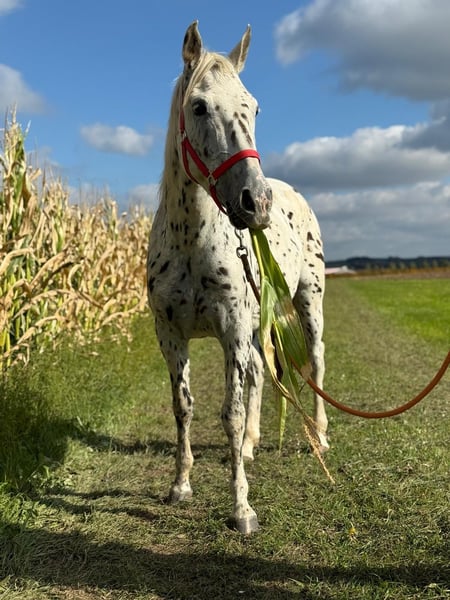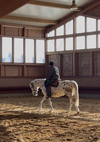 Zum Verkauf steht eine sehr freundliche 5 Jährige Kanpstrupper-Stute mit einem Stockmaß von ca. 1.56m Sie ist an Sattel und Reiter gewöhnt zu uns gekommen und befindet sich nun in fundierter Ausbildung. Derzeit geht sie sicher in Schritt und Trab in der Halle und macht Anfänge im Gallopp. An der Hand war sie bereits im Gelände und zeigt sich aufmerksam aber ruhig. Sie ist sehr lernwillig und genießt die Zeit mit ihrer Bezugsperson. - Laute und Hupende Autos bringen sie nicht aus der Fassung. Aufgewachsen im größen Herdenverband und nun in Haltung in einer Box mit Paddock kennt sie beinahe jede Haltungsform. Tagsüber ist sie mit ihren Mädels auf der Koppel oder dem Schlechtwetterauslauf und zeigt sich auch hier sehr offen und zugewandt. Die Stute sucht jemanden, der eine gute Grundausbildung wertschätzt und ihr einen schönen Platz bieten kann. Zur weiteren Ausbildung kann sie gerne noch bleiben. Auch die Möglichkeit, das Pferd nach dem Kauf vor Ort in Beritt zu lassen und zusätzlichen Unterricht zum Zusammenwachsen mit dem Zukünftigen Partner wird geboten. Für einen Besichtigungstermin berechnen wir für das Vorführen und Probereiten 40€ pro Pferd. Diese werden beim Kauf zurückerstattet.
