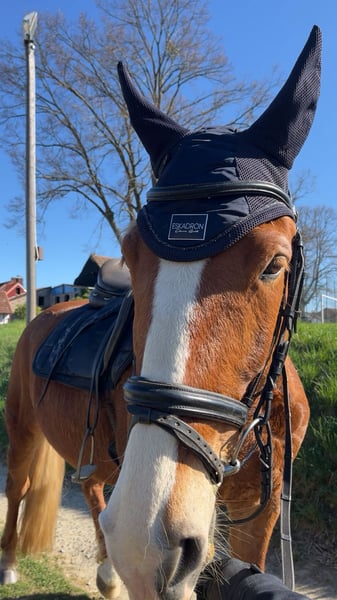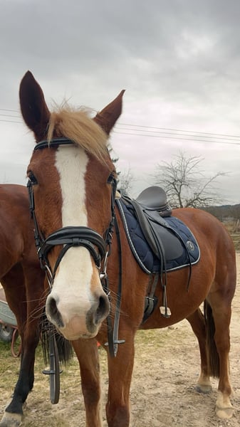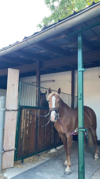 Due to lack of time, we are selling our Tamina. She was born and raised with us, has been extensively trained in professional riding, and has been used for leisure riding. She is registered as a competition horse but has not yet been competed due to time constraints. Tamina has above-average movement, enjoys small jumping courses, and is relaxed and reliable in the terrain. She is familiar with loading, road traffic, and other everyday situations.