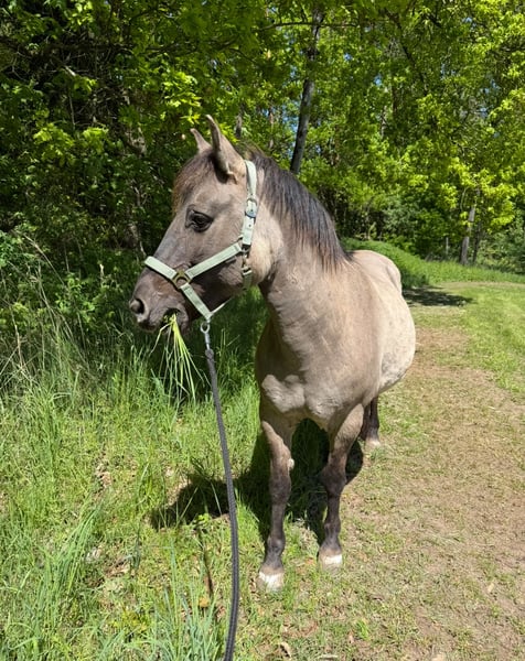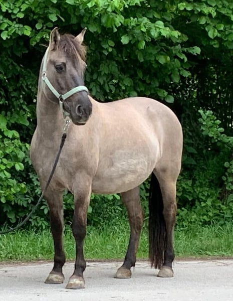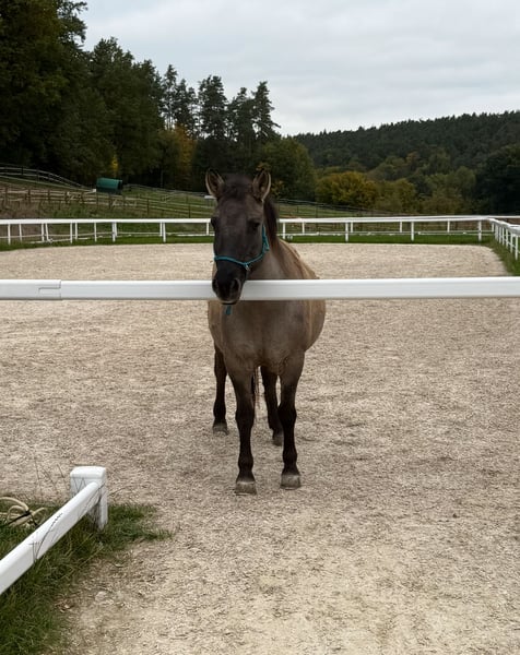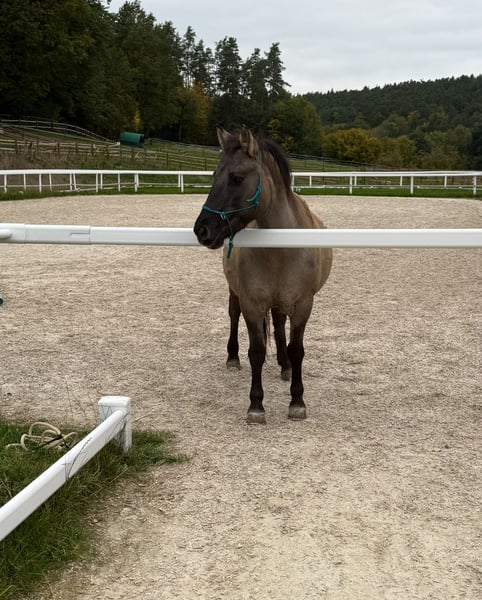 Wir suchen für unsere Konikstute ein neues zu Hause, da wir sie leider nicht so beschäftigen können wie sie es gerne möchte. Sie geht sehr gerne ins Gelände, alleine und in der Gruppe, ist aber auch auf dem Platz (Halle) motiviert, ist für Bodenarbeit zu begeistern, kennt Stangenarbeit, Doppellonge und erste Schritte vom NHS. Ideal wäre ein Jugendlicher oder ein leichter Erwachsener (bis max. 65 Kilo). Da sie sehr sensibel und fein zu reiten ist, ist sie definitiv KEIN Kinderpony. Als absolutes Charakterpferd sucht sie sich ihre Menschen aus, hat man aber ihr Vertrauen gewonnen hat man einen Freund fürs Leben. Sie steht aktuell im Offenstall in einer reinen Stutenherde, kennt aber auch gemischte Herden und wird auch nur in entsprechende Haltung mit Ponygesellschaft abgegeben. Es sollte bedacht werden, dass sie absolut leichtfuttrig ist. Aktuell hat sie ein paar Kilo zu viel und sollte noch etwas abnehmen. Stockmaß 1,42 m Sie ist Barhufer und kommt damit super zurecht, die Zähne wurden im April frisch gemacht. Sie ist in Deutschland geboren und hat deutsche Papiere. Da sie mir sehr am Herzen liegt gilt absolut Platz vor Preis. Bei ernsthaftem Interesse sende ich gerne weitere Bilder und Informationen. Bitte haben Sie dafür Verständnis, dass anonyme Anfragen und reine Preisanfragen ignoriert werden.