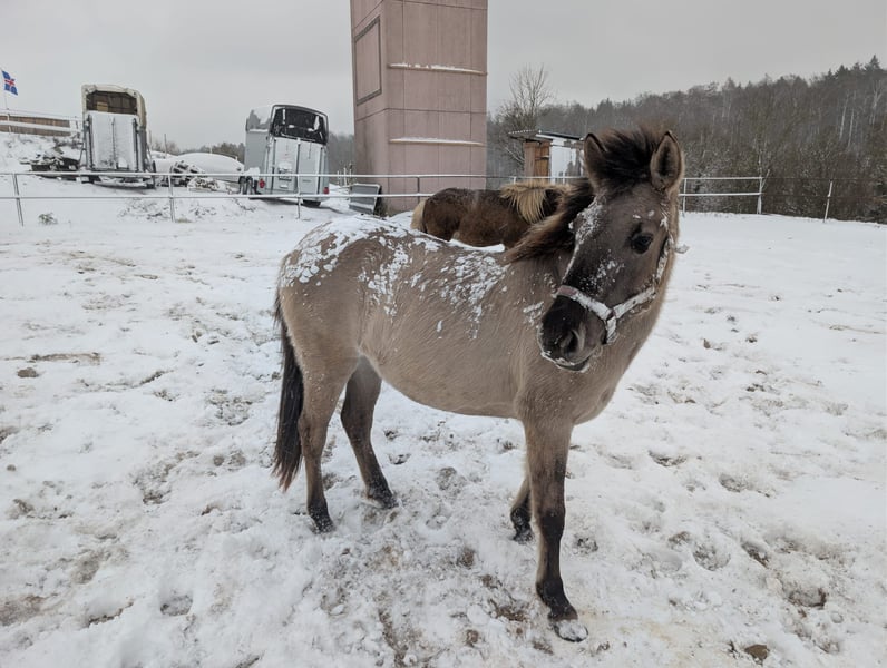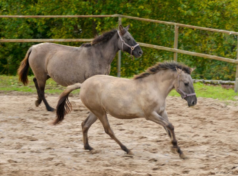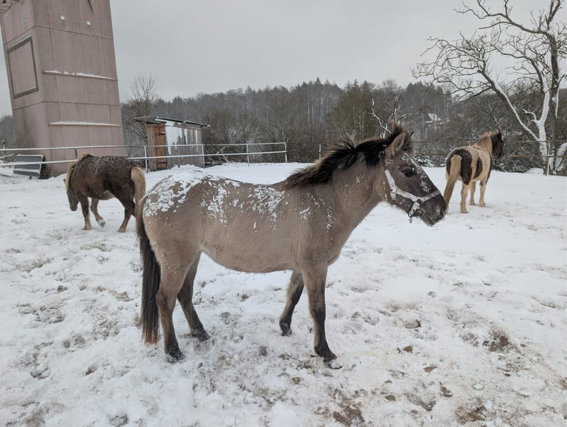 Beautiful, one-of-a-kind Konik filly for sale! This charming silver grullo currently stands at 130 cm, with long legs and an athletic build. She comes from a sport Konik line. Both parents are over 1.45 m. The mare captivates with her friendly, open, and confident nature. She loves cuddles and long walks (she walks easily on her own with her human). Manja is halter trained and knows the first lessons on the ground. She is familiar with farm life and all its noises (tractors, trucks, motorcycles and cars, dogs, cows, alpacas, and much more). She is vaccinated, regularly dewormed, and behaves well at the farrier and in the trailer. Special price for stable boarding (minimum 1 year). Here she remains covered by liability and surgery insurance within the herd. These costs are therefore waived for the first year. If you are interested in this great young mare with lots of potential and would like more information, please do not hesitate to get in touch. I look forward to hearing from you!