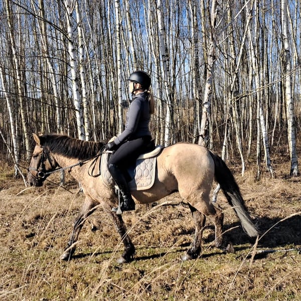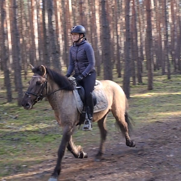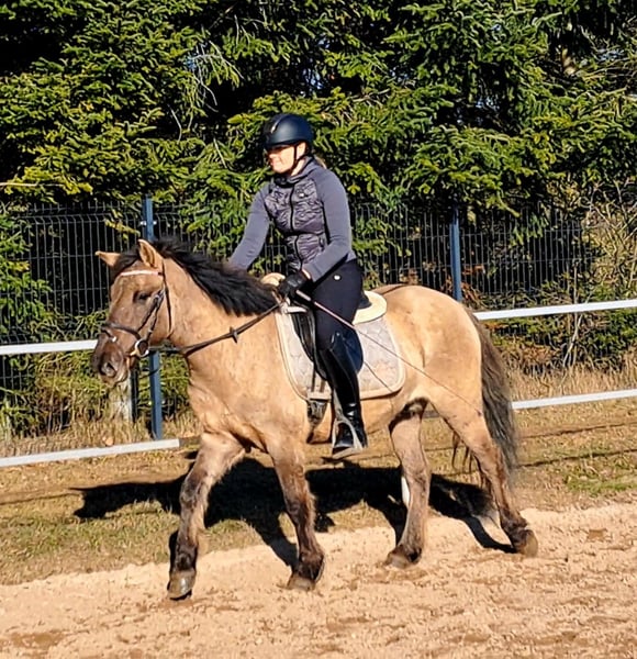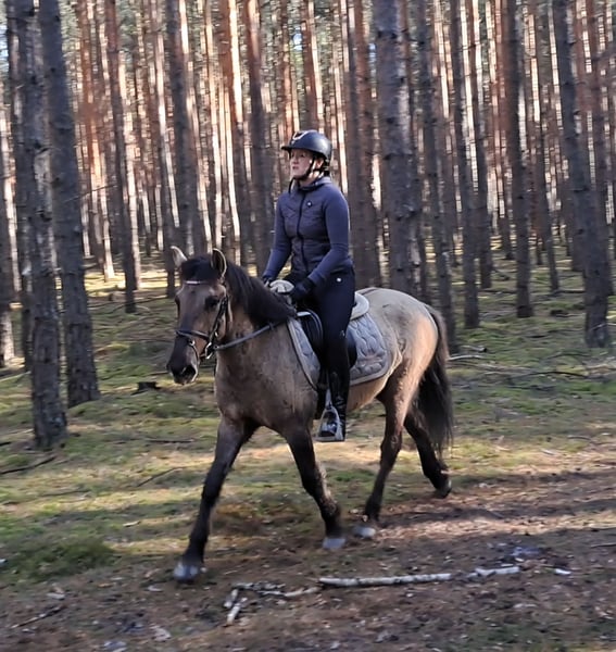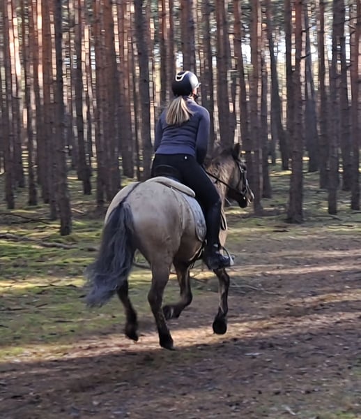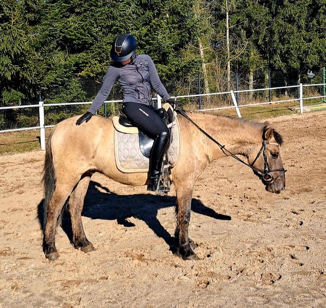 Konik Gelding – Perfect for trail riding! 4 years old, approximately 14.1 hh (still growing) Well-broken and confident in the terrain. Familiar with lunging, riding arena, and rides out alone. Training level appropriate for age. Fullbred with pure lineage, Free of vices. Excellent health. Suitable for open stable housing. Videos available. Transport possible.