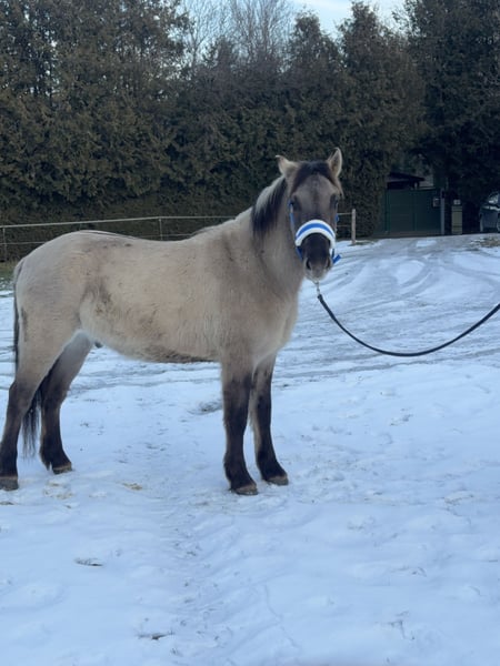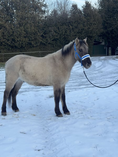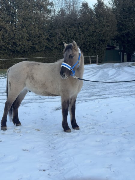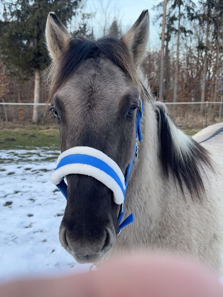 Der Name bedeutet auf Deutsch „STEINKLEE“ Der Wallach ist ein netter Konik, der mit dem Sattel und dem Reitergewicht vertraut gemacht wurde. Er spielt gerne mit anderen Pferden und wird in der Herde im Offenstall gehalten. Er wird Ende April 4 Jahre alt. Wir arbeiten mit ihm altersentsprechend. Momentan hat er Zeit mit uns auf Spaziergängen die Zivilisation zu erkunden. In den nächsten Wochen werden wir ihn im Gelände reiten und auch mit Kindern arbeiten. Sie können uns gerne telefonisch kontaktieren um weitere Fragen an uns stellen zu können. Bitte haben Sie Verständnis, dass wir auf Mails ohne Kontaktdaten aus Sicherheitsgründen nicht reagieren.