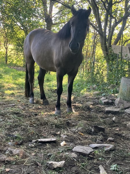 We are selling our beautiful Konik gelding. He turned four years old in June. He has been backed and apparently also ridden. However, he hasn't been ridden for a while, so he would need to be re-started gradually. He is incredibly curious and fearless. He knows and likes children, but he is not suitable for beginners due to his strong yet very affectionate character. He learns quickly and is very agile in the terrain. He has excellent, strong hooves and is barefoot.