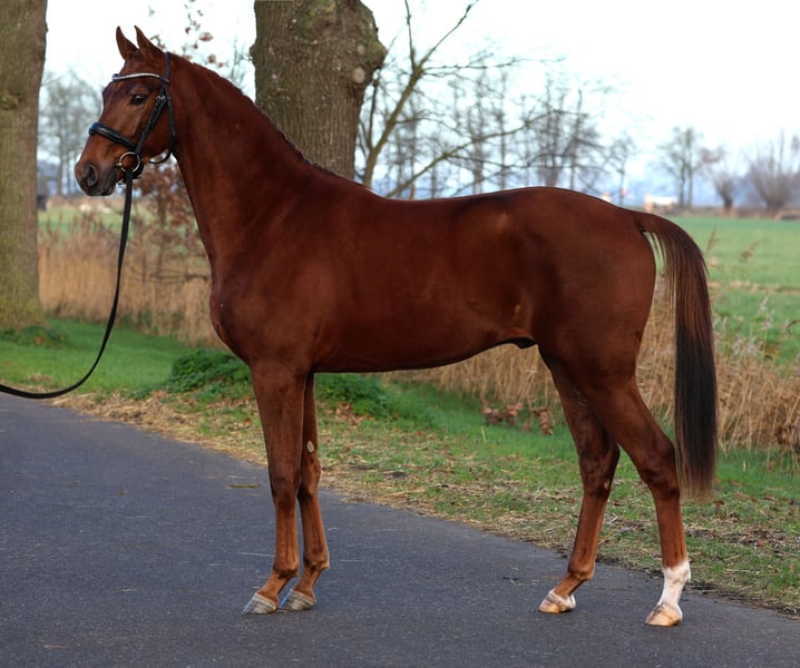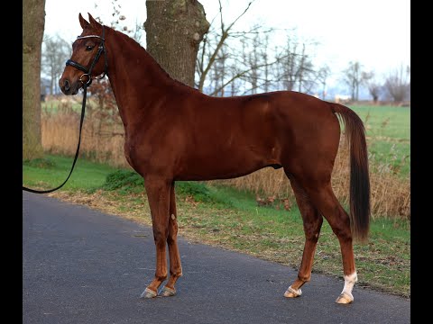 https://esha.horse/Auctions/Item/5595 Matlock is een fijn bewegende 2,5 jarige hengst die met veel souplesse en lichaamsgebruik loopt. Hij stamt af van de goed presterende hengst Mauro Turfhorst N.O.P.T die momenteel succesvol inter I loopt onder Dinja van Liere. Zijn moeder is de Z2 geklasserde Jazz dochter Alona welke ondermeer het PSG paard Frost T. bracht die in de USA staat. Uit de directe moederlijn komen veel sportpaarden waaronder de Grand-Prix paarden Zidane (v. Rhodium), Warsteiner (v. Riverman) en Symphonie (v. Metall). Matlock is a nicely moving 2.5-year-old stallion who moves with a lot of suppleness and good use of his body. He is sired by the successful stallion Mauro Turfhorst N.O.P.T, who is currently competing successfully at Inter I level under Dinja van Liere. His dam is the Z2-classified Jazz daughter Alona, who also produced the PSG horse Frost T., now based in the USA. From the direct dam line come many sport horses, including the Grand Prix horses Zidane (by Rhodium), Warsteiner (by Riverman) and Symphonie (by Metall). Matlock est un étalon de 2 ans et demi doté de belles allures, se déplaçant avec beaucoup de souplesse et une excellente utilisation de son corps. Il est issu de l’étalon performant Mauro Turfhorst N.O.P.T, qui concourt actuellement avec succès au niveau Inter I sous la selle de Dinja van Liere. Sa mère est la fille de Jazz, Alona, classée Z2, qui a également produit le cheval de PSG Frost T., actuellement basé aux États-Unis. La lignée maternelle directe a donné de nombreux chevaux de sport, dont les chevaux de Grand Prix Zidane (par Rhodium), Warsteiner (par Riverman) et Symphonie (par Metall). Matlock ist ein gut bewegender 2,5-jähriger Hengst, der sich mit viel Losgelassenheit und gutem Körpereinsatz präsentiert. Er stammt ab von dem erfolgreich sporterprobten Hengst Mauro Turfhorst N.O.P.T, der derzeit erfolgreich auf Inter-I-Niveau unter Dinja van Liere geht. Seine Mutter ist die Z2-klassierte Jazz-Tochter Alona, die unter anderem das PSG-Pferd Frost T. hervorgebracht hat, das heute in den USA steht. Aus der direkten Mutterlinie stammen zahlreiche Sportpferde, darunter die Grand-Prix-Pferde Zidane (v. Rhodium), Warsteiner (v. Riverman) und Symphonie (v. Metall).