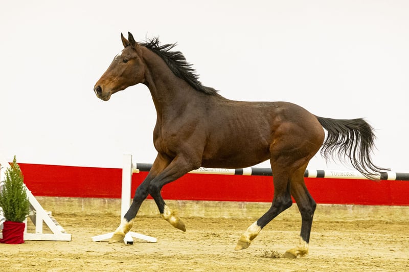 You have scope and you have scope, but this is on another level. Seven Up shows exceptional ease and power, jumping with a light-footedness that is rarely seen. He is quick off the ground, very careful and displays excellent technique combined with a big, balanced canter. His athletic movement, active hind leg and natural balance make him a true blood horse with everything needed for the future. This is a horse that jumps effortlessly and offers so much natural quality that higher tracks feel like a logical next step. Sire Eldorado van de Zeshoek TN competed himself at 1.60 m Grand Prix level with top results at CSIO5* events such as Lummen, Spruce Meadows and La Baule. As a sire, he belongs to the absolute world elite and produced top international performers like Killer Queen VDM (1.70 m), Jeunesse (1.70 m) and Electric Blue P (1.70 m). Eldorado is renowned for passing on scope, mentality and exceptional power, all clearly visible in Seven Up. The damline is exceptionally deep and performance proven. Dam I. Zarah R 2 descends from the famous Zarah line, which has produced generations of international sport horses and approved stallions. This family includes Captain Cooper, winner at 1.60–1.70 m Grand Prix level, Laurinn (approved, 1.60 m), Indian Gold (1.55 m), Kenwood (1.45 m), Gringo (approved, 1.45 m), Jeck K (1.50 m winner) and Mister Glenfiddich (1.45 m), among many others competing at 1.40–1.60 m level. This damline is known for its durability, power and consistent top-level sport results Seven Up combines extraordinary scope, light-footedness and technique with one of the most reliable performance pedigrees available. A true blood horse built for the very highest levels.